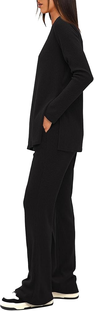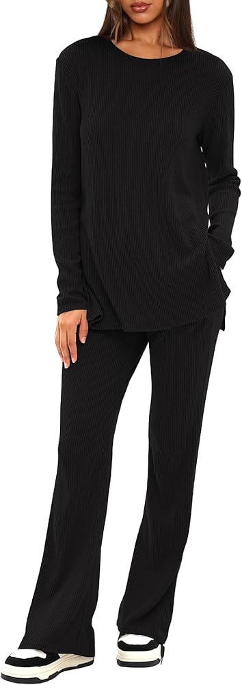 Darong طقم بيجامات حريمي مكون من قطعتين طقم صالة مضلع بأكمام طويلة بلوزات وسراويل 2024 ملابس مطابقة للخريف