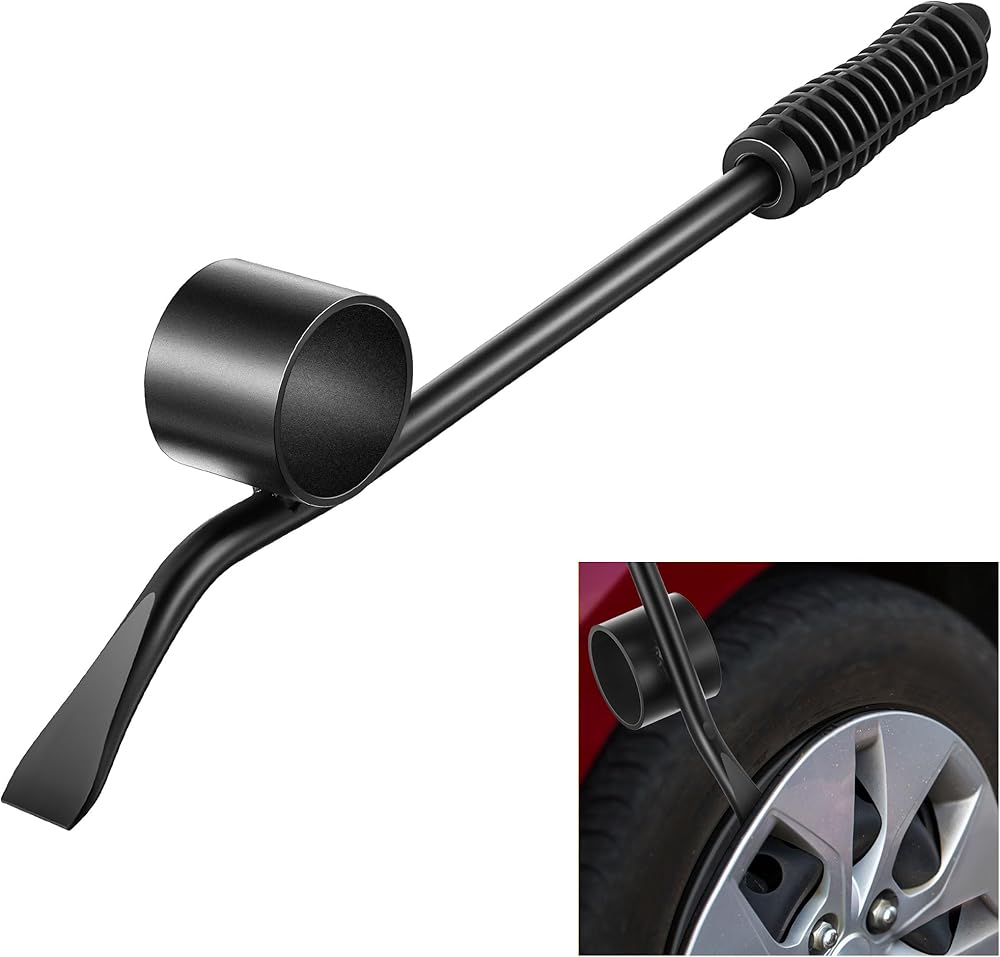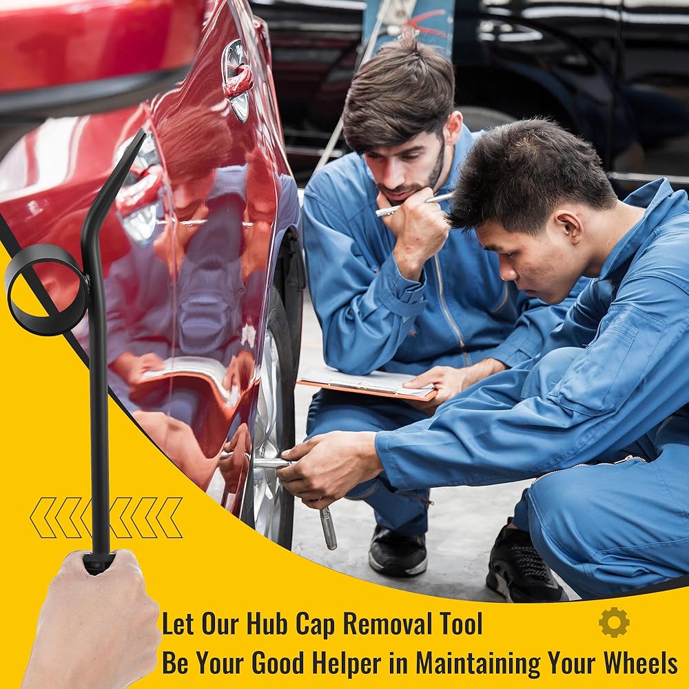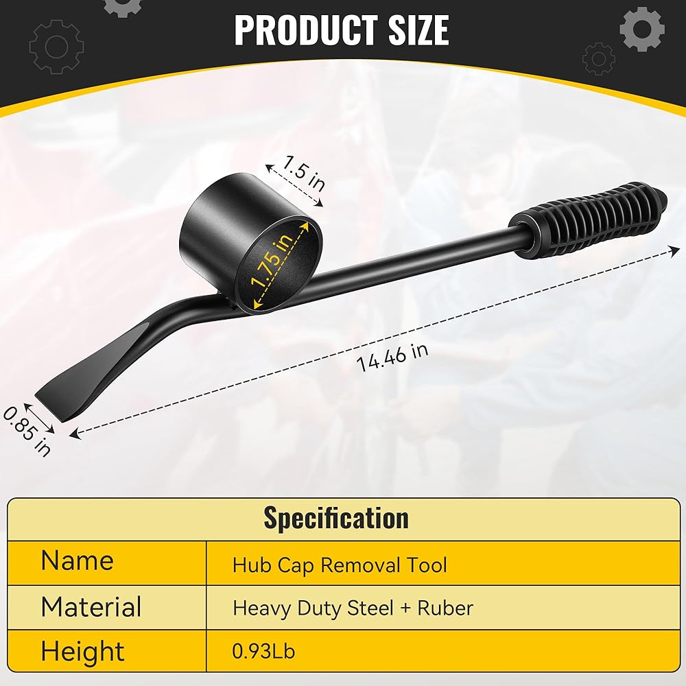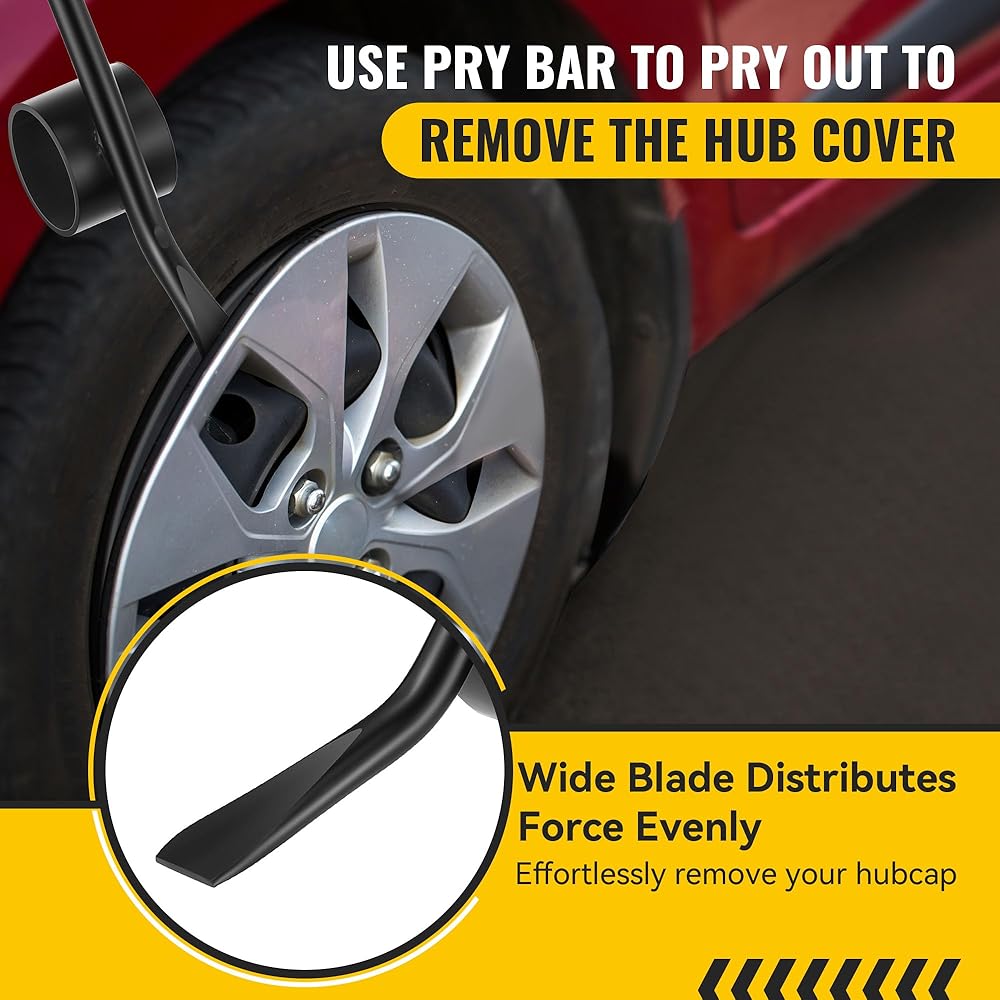 Steel Pry Bar with Wide Blade: The pry bar is made of solid heavy duty steel, ensuring it is a reliable companion for your hubcap removal needs; The wide blade design evenly distributes force, ensuring easy removal without damaging your vehicle's components