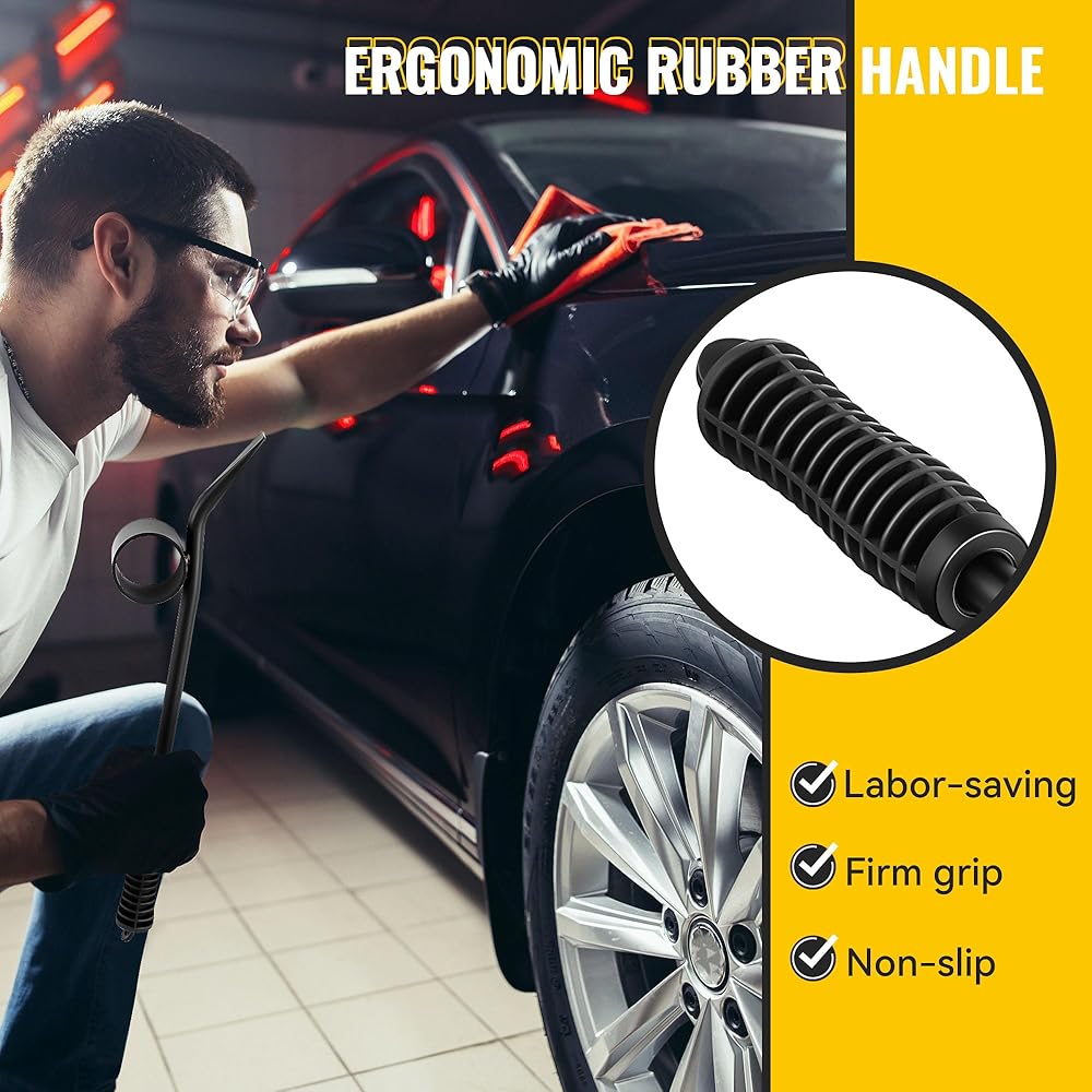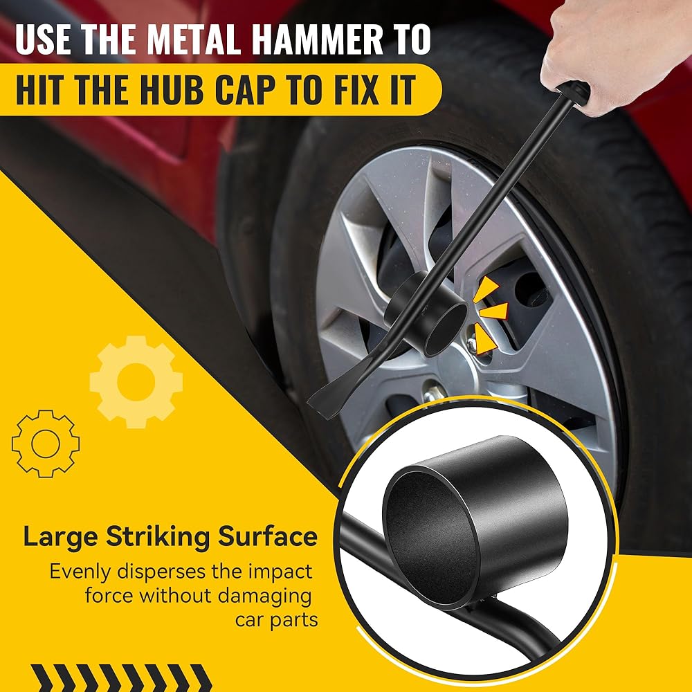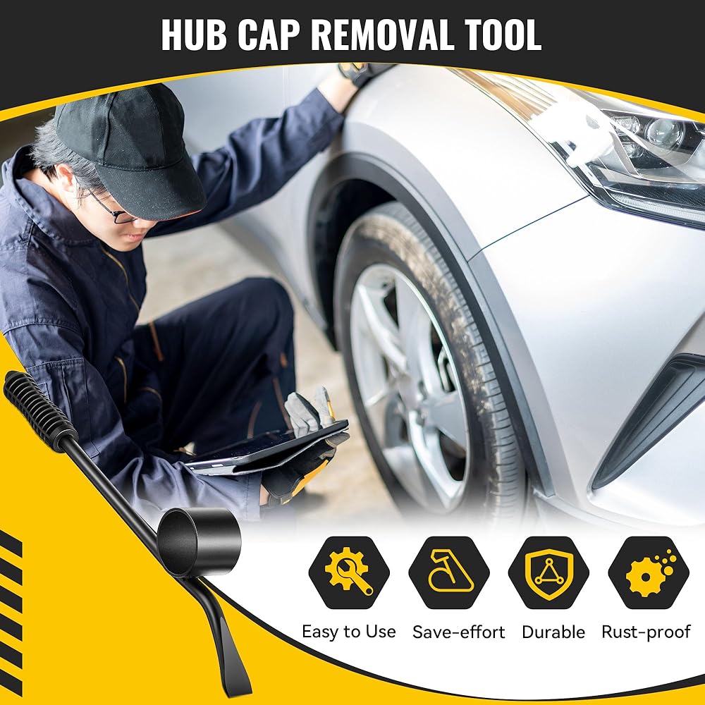 Ergonomic Rubber Handle: Our wheel cap removal tool takes your comfort into full consideration, with an ergonomic rubber handle that provides a firm grip and is non slip; Ensures you maintain control and comfort even over extended periods of use, making hubcap removal and installation a breeze