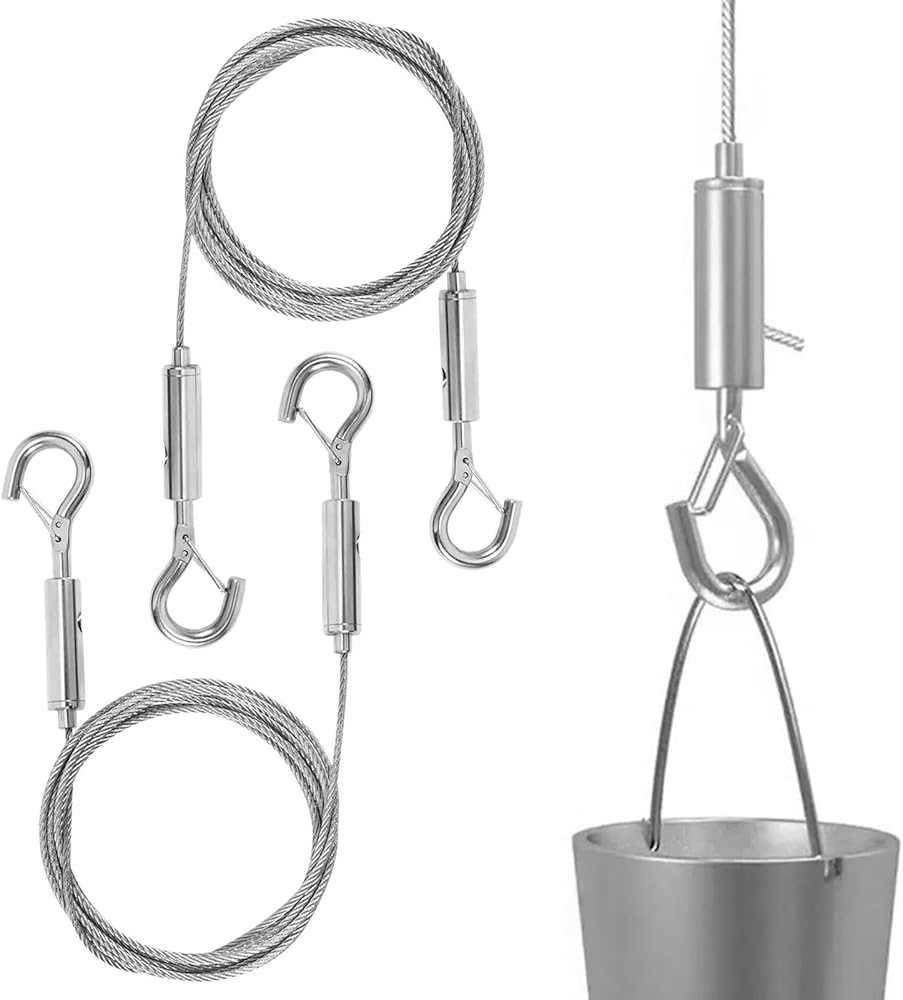 • The length of the wire rope is about 2m/78.74inch, and the length can be adjusted according to the needs. You just need hold down the adjusting column at the bottom of the hook and drag the wire rop.