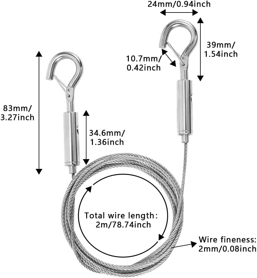 Steel wire size: about 2m x 2mm/78.74 x 0.08inch