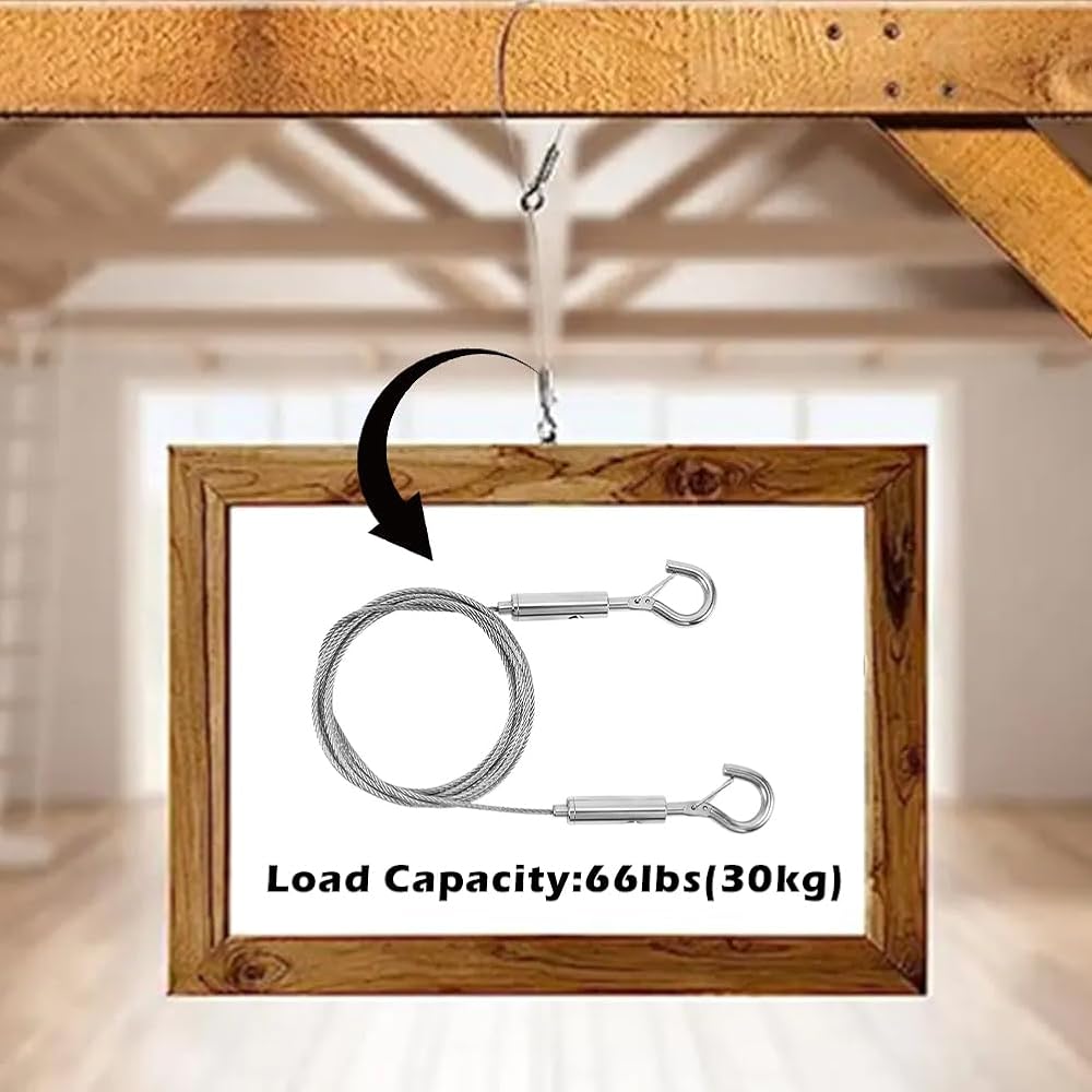 【WIRE ROPE】Picture hanging rope is made of stainless steel wire, with high hardness and toughness, strong and durable. It is finely polished with a smooth surface that won't scratch your hands when you use it.
