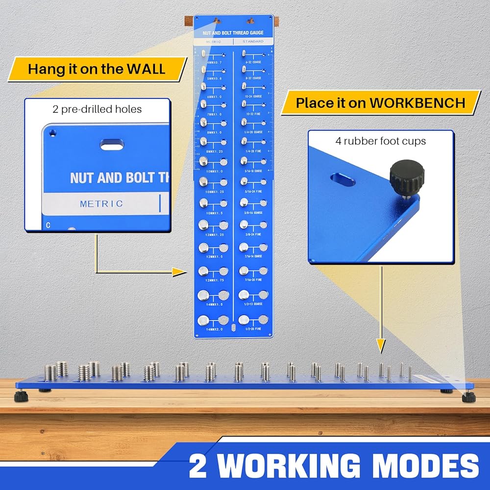 • فاحص الخيط الأساسي: يعد فاحص حجم الخيط أداة أساسية للمحترفين وعشاق الأعمال اليدوية على حد سواء، ويساعد على تنظيم البراغي والصواميل الفوضوية. بفضل التصميم المتكامل وفتحات التثبيت المعدة، فإنه يضمن الراحة وسهولة الاستخدام، سواء تم تركيبه على الحائط أو على صندوق الأدوات. يقدم كلاً من معايير SAE ومقاييس الخيوط المترية، ويصبح رفيقًا لا غنى عنه لمختلف المهنيين بما في ذلك ميكانيكا السيارات والنجارين واللحام والسباكين والمهندسين الميكانيكيين وعشاق إصلاح السيارات وفنيي الورش.