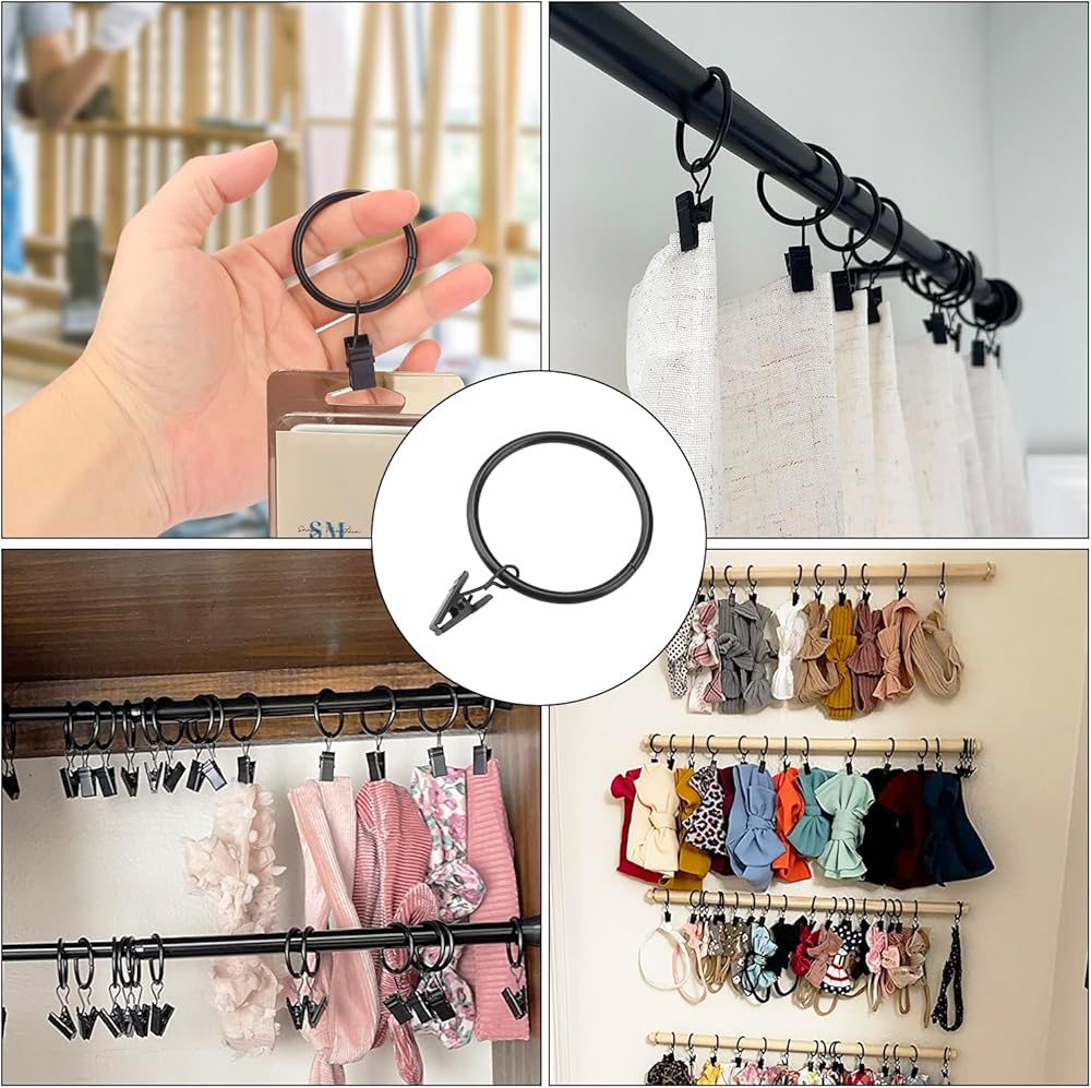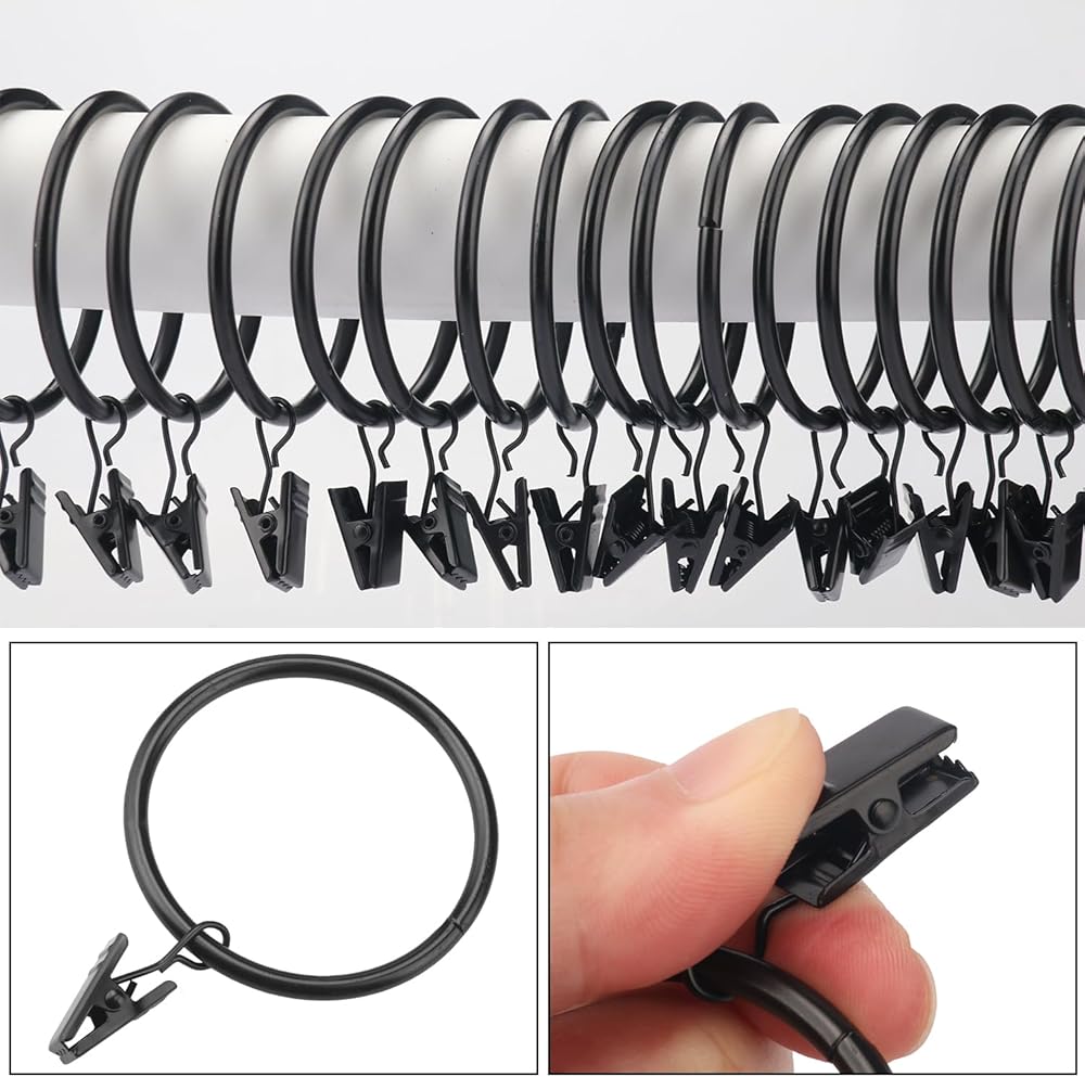 150 عبوة من حلقات ستائر معدنية قابلة للفتح مقاس 1.5 بوصة مع مشابك، حلقات ستائر زخرفية مقاومة للصدأ مع خطافات قوية للغرفة والحمام ونافذة الصالون، باللون الأسود، من جينهاكون