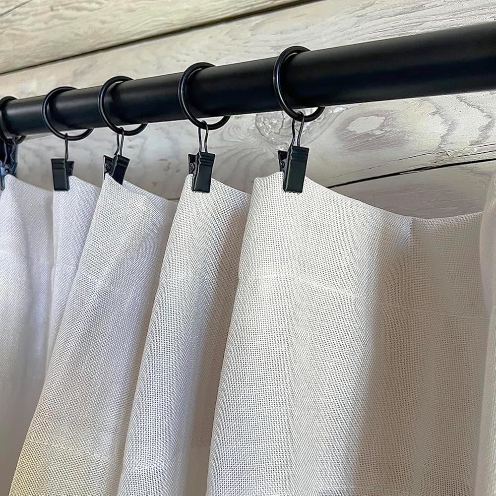 【قبضة قوية】 المشابك المعدنية المحملة بنابض تمسك الستارة بشكل آمن لمنعها من الانزلاق. يمكن لكل مشبك حمل ما يصل إلى 2 رطل أو 0.9 كجم.