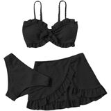 • Features: knot front, ruffle and frill Trim, removable padding and wireless bikini top, high waisted bikini bottom, wrap beach cover up skirt