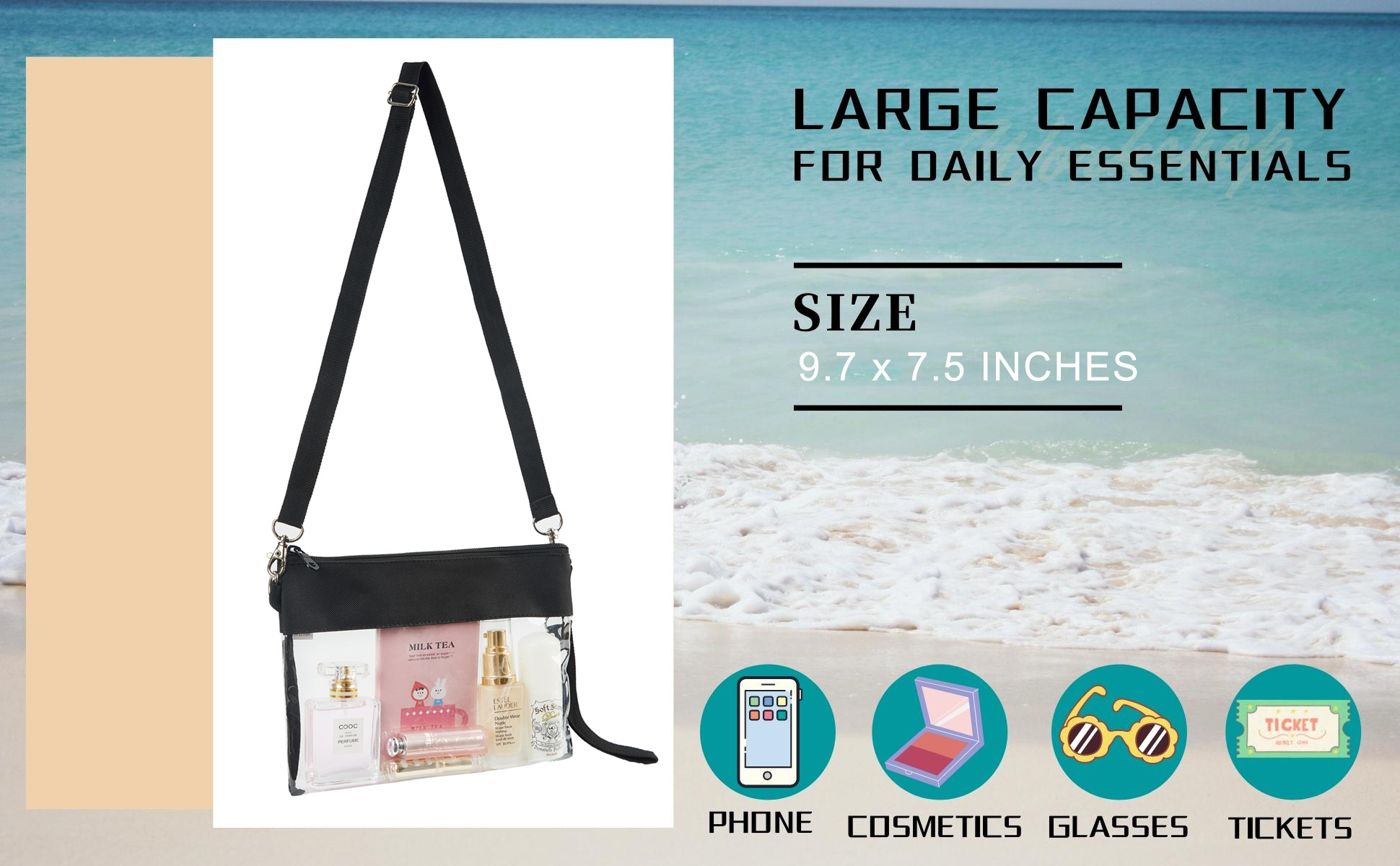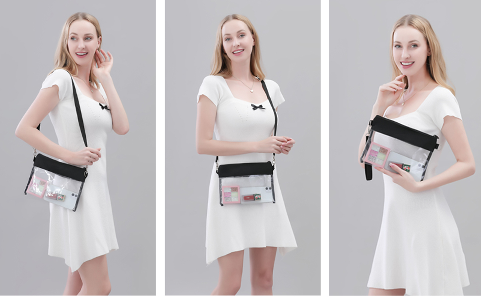 احصل على الأمان بسهولة: حقيبة كروس شفافة مع رؤية كاملة من جميع الجوانب، بما في ذلك الظهر. قم بالمرور عبر نقاط التفتيش بحقيبة اليد الشفافة لتجنب الرفض في المطار أو عند بوابة الملعب.