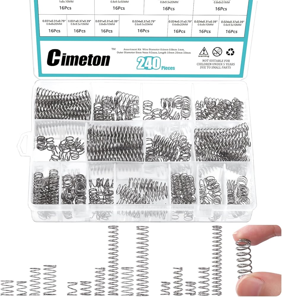 Cimeton 240Pcs 15Sizes Compression Springs Assortment Kit Stainless Steel Compression and Extension Springs for Home Repairs and DIY Projects