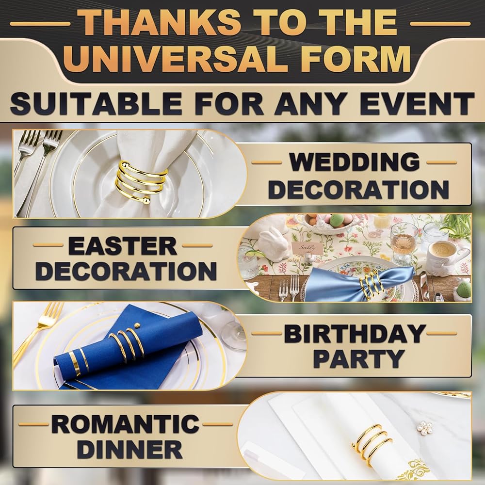 【الأناقة والدفء】: للترفيه عن الضيوف والعشاق، استخدم حلقات المناديل لتتناسب مع أدوات المائدة النبيلة والأنيقة، يحتاج الطعام اللذيذ أيضًا إلى زخرفة رائعة للانطلاق، وإضافة جو أنيق وجميل إلى الحفلة، وجعل عشاءك أكثر دفئًا.