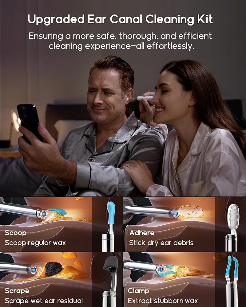 استخدام منزلي بدون مجهود - يوفر الوقت والمال والمتاعب: قم بترقية روتين الرعاية الصحية الخاص بك باستخدام منتج العناية بالأذن الذي يعمل بتقنية WiFi في المنزل. فهو يجمع بين راحة الاستخدام المنزلي والدقة الطبية والنظافة. راقب صحة أذنك، وشارك الصور ومقاطع الفيديو للحصول على مشورة الخبراء، وقم بإزالة الأجسام الغريبة في قناة الأذن بأمان في المنزل. إنه الحل الأمثل لتخفيف المخاوف المتعلقة بصحة الأذن في المنزل، مما يلغي الحاجة إلى الرحلات المرهقة.