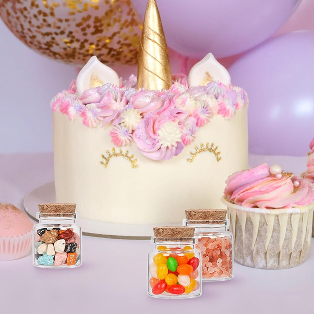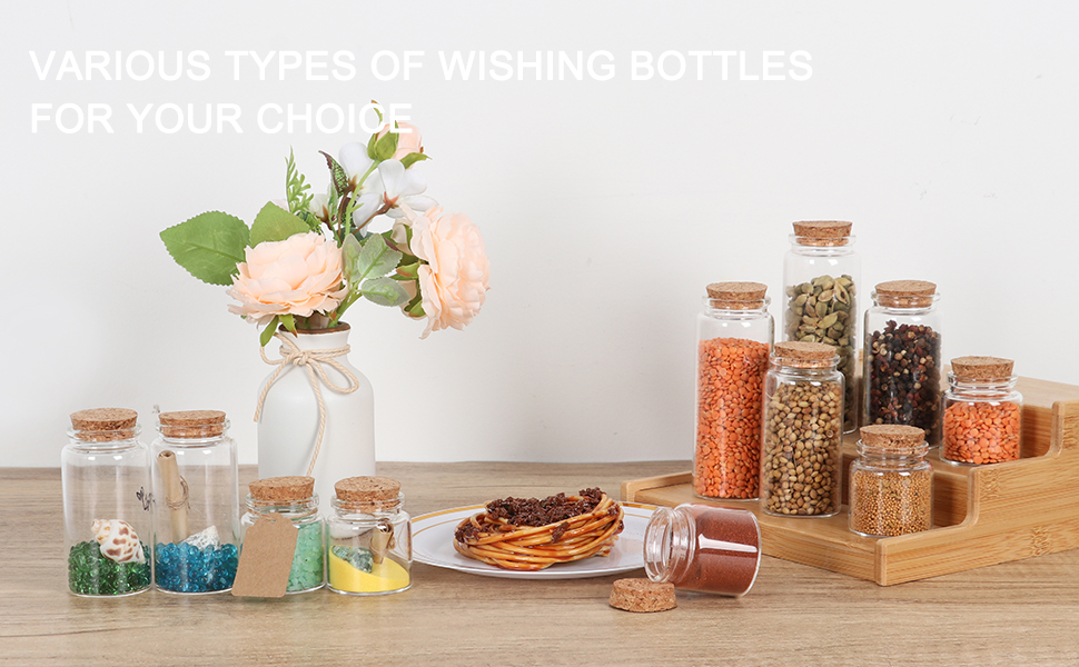 برطمانات مثالية متعددة الاستخدامات: يمكن للبرطمانات الزجاجية الصغيرة المزودة بالفلين أن تحتوي على الزيوت العطرية والرمال والحروف والعطور؛ يمكنك استخدام الزجاجات الصغيرة لإبداعاتك الفنية؛ يمكنك الطلاء على البرطمانات الصغيرة، أو ملء بعض الخرزات لطيفة جدًا.
