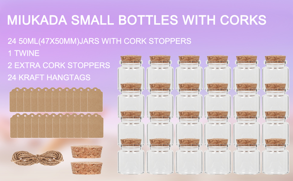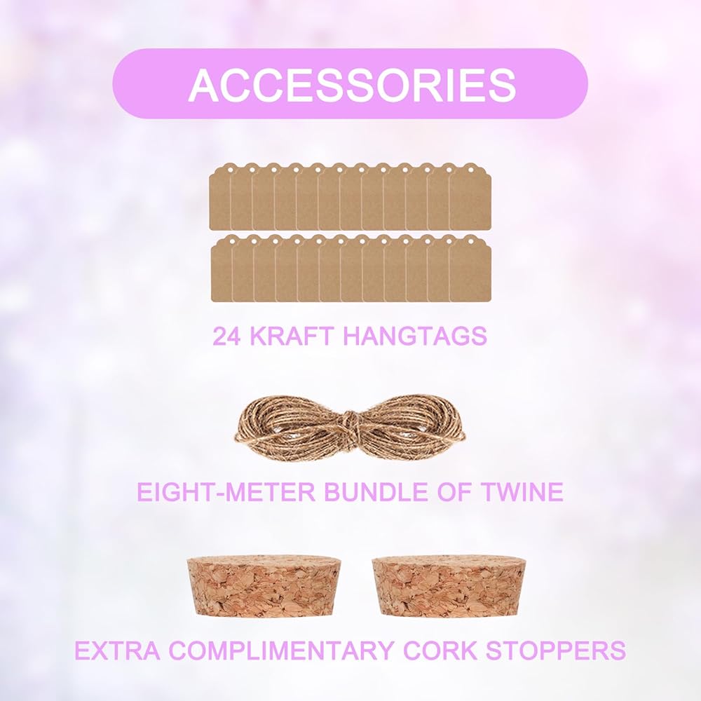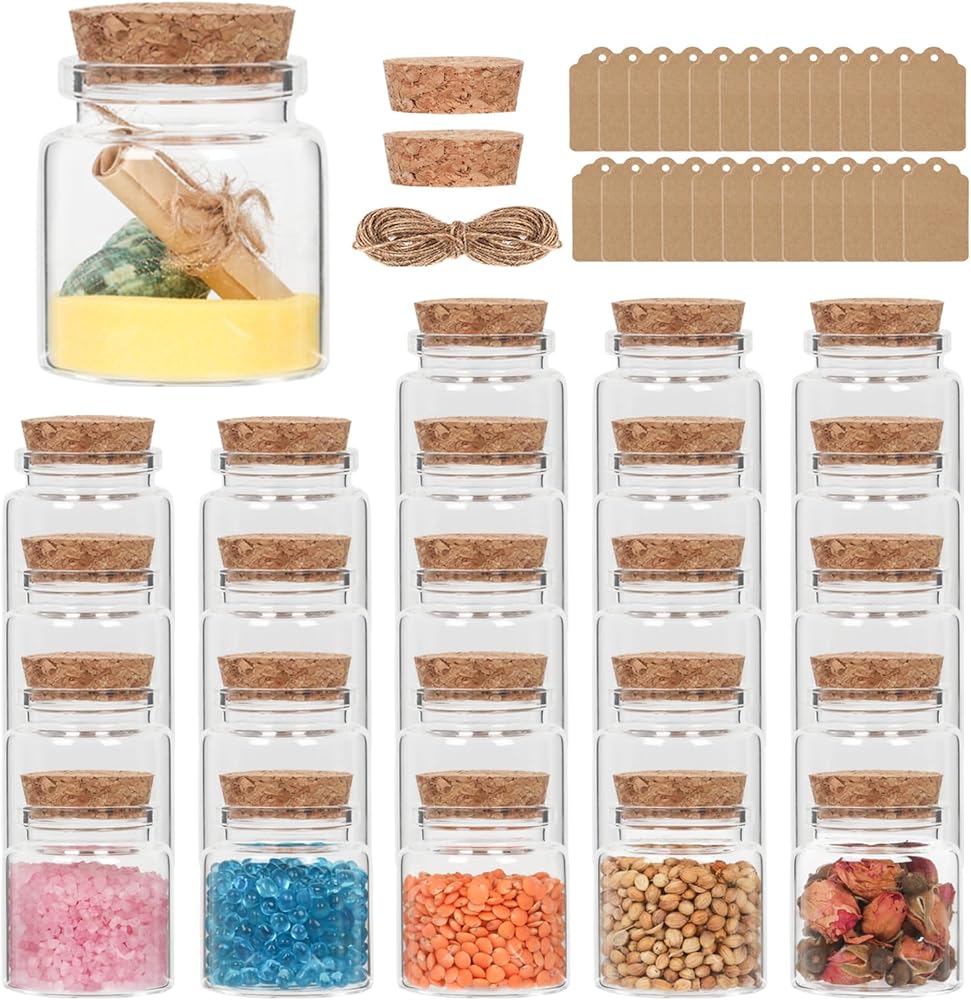 برطمانات زجاجية صغيرة سعة 50 مل بأغطية من الفلين، 24 عبوة من الزجاجات الصغيرة مع سدادات وعلامات من الفلين والخيوط الإضافية، برطمان رمل صغير، برطمان صدف، قوارير زجاجية بأغطية، برطمان حبوب منع الحمل، برطمان تعويذة