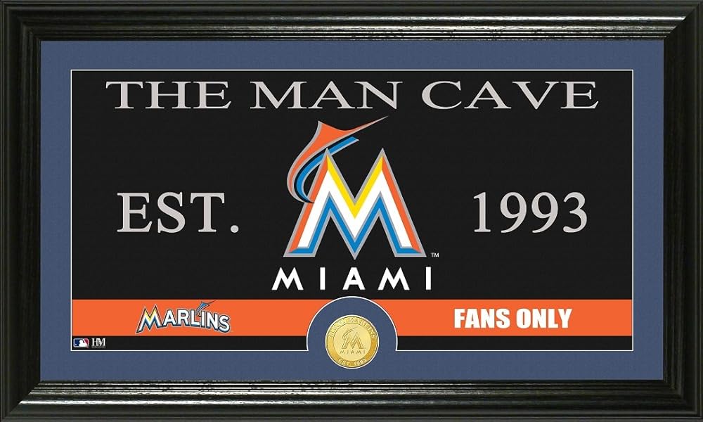 Start your Miami Marlins Man Cave with our handsome Miami Marlins MAN CAVE sign! This 12 x 20 plaque shows a photo of the teams logo and established date along with THE MAN CAVE written across the top, and included team coin.