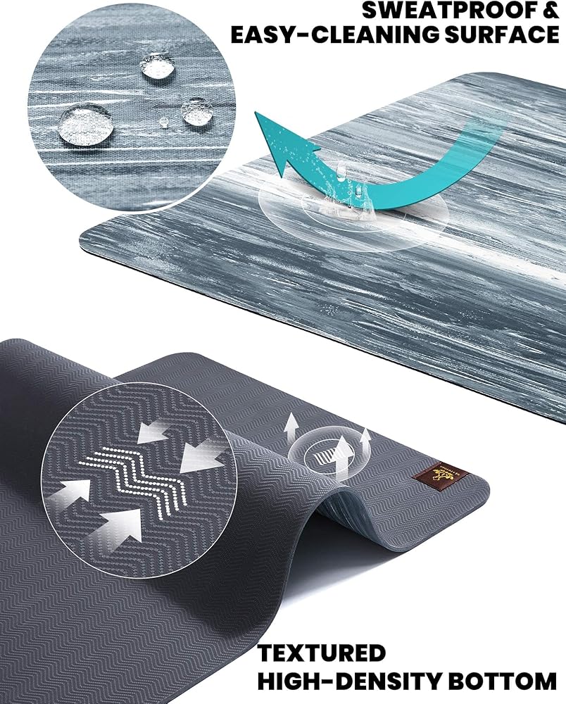 • سجادة يوجا خفيفة الوزن ومحمولة - 72 بوصة × 24 بوصة لمزيد من المساحة التي تحتاجها لممارسة اليوغا. السُمك: 4.5 ملم. سجادة اليوجا هيثيوجا المضادة للانزلاق أخف من سجادات اليوجا المطاطية التقليدية، مما يجعلها أكثر سهولة في الحمل عند الذهاب إلى فصول الاستوديو.