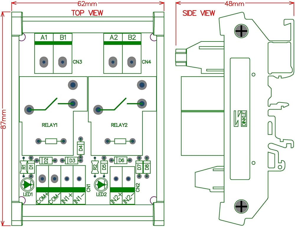 DIN Rail Mount Passive 2 Channel SPST-NO 30 Amp Power Relay Module.