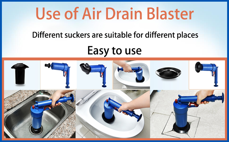 【سهل الاستخدام】يستخدم مكبس المرحاض هواءًا مضغوطًا عالي الضغط للتخلص بسرعة حتى من أكثر عوائق الصرف تحديًا. ما عليك سوى ضغط الهواء، وسحب الزناد، وستقوم هذه الأداة القوية بإزالة أي عوائق دون عناء. تعمل بشكل أسرع بكثير من منظفات المكبس والثعبان التقليدية، مما يوفر لك وقتاً ثميناً