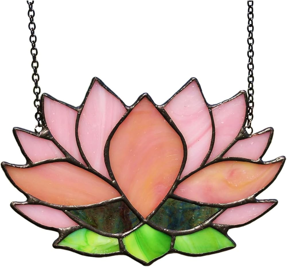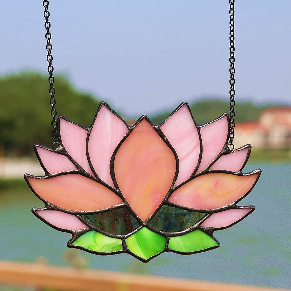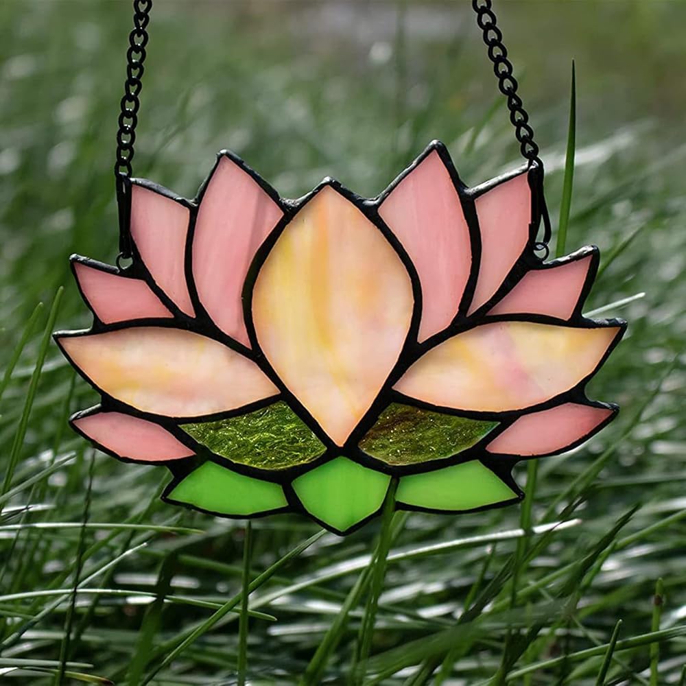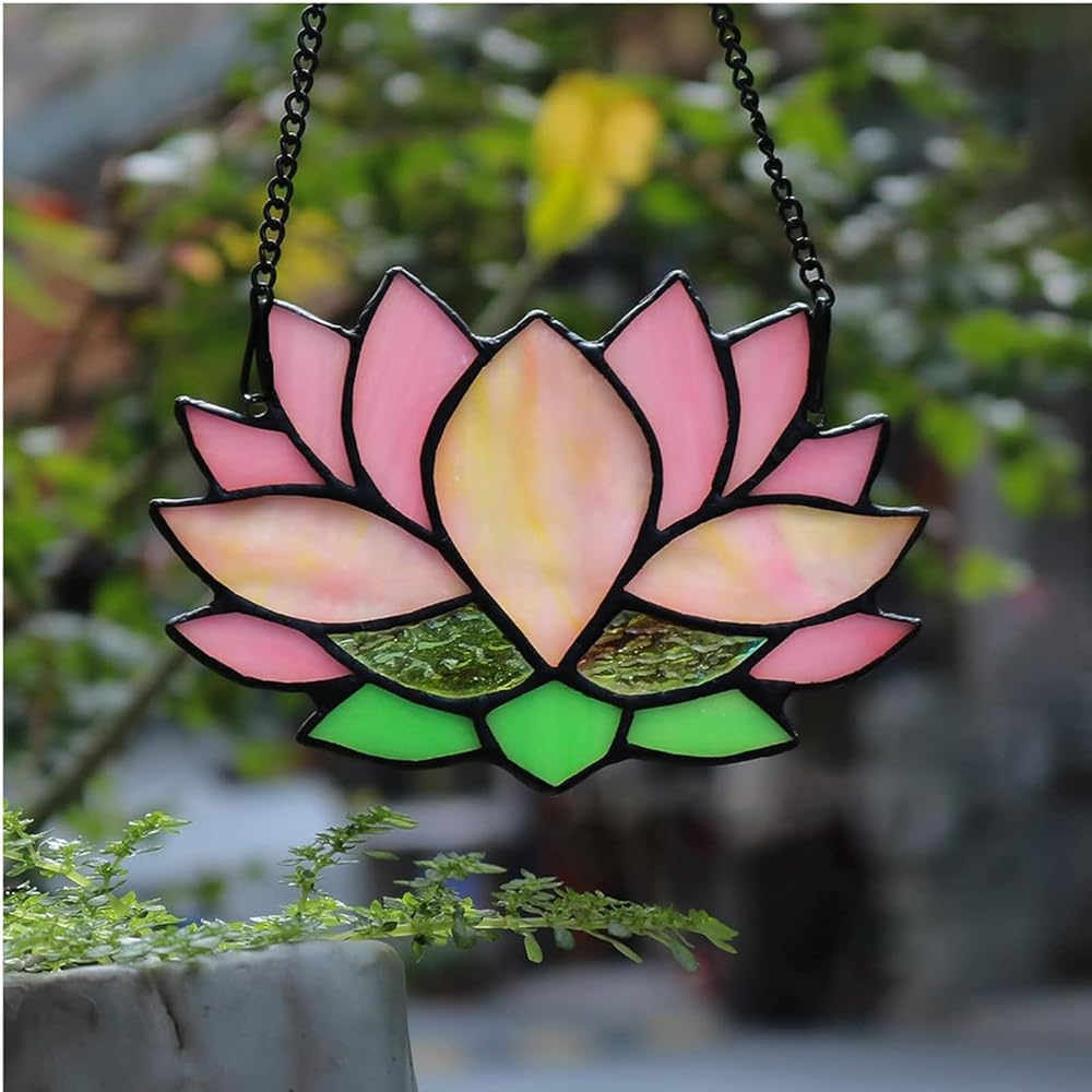 【Eye-catching Design Decoration】Featuring a lotus flower themed design, this lotus flower decor stained glass window hangings is colorful, crafted, and eye-catching and will bring joy to children and guests