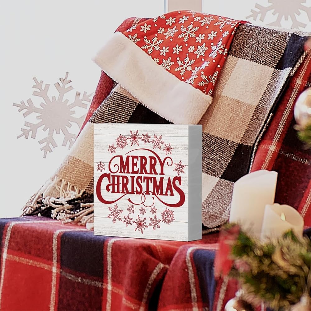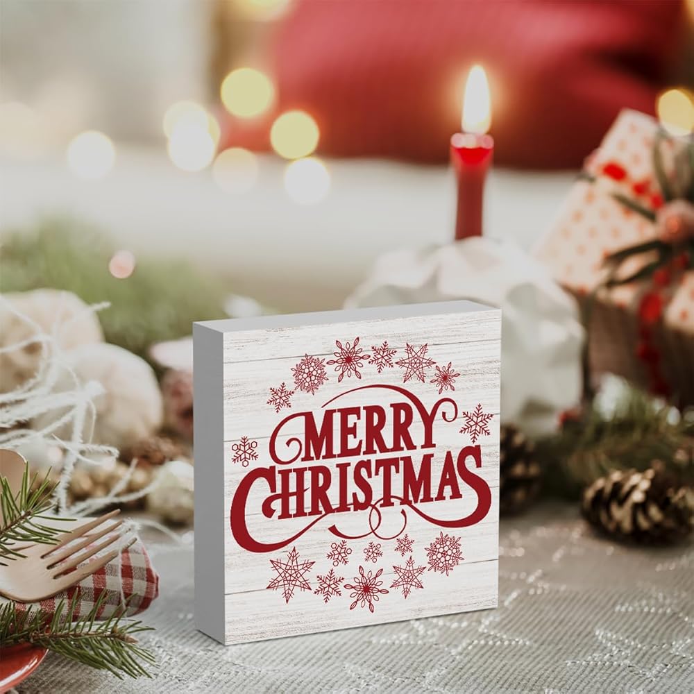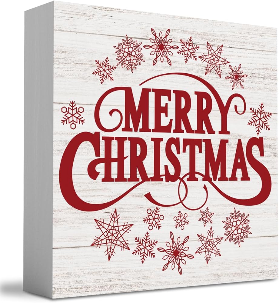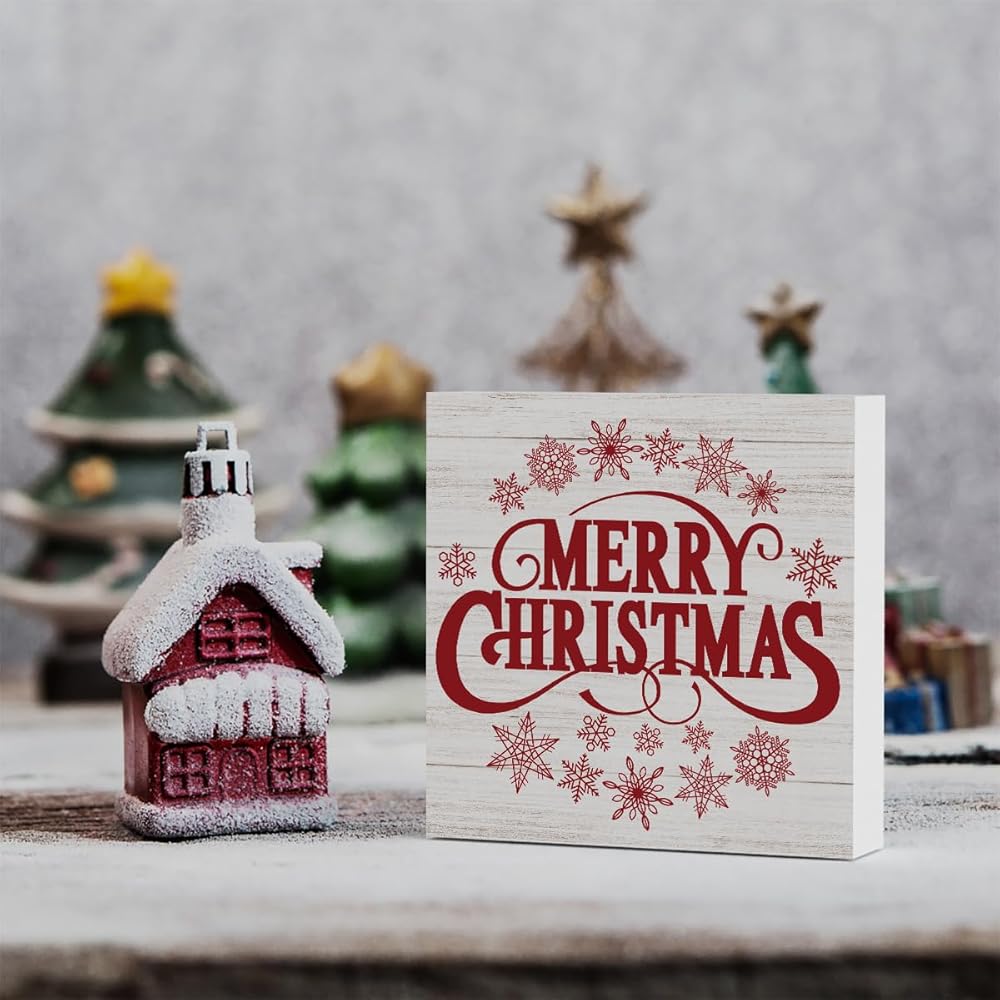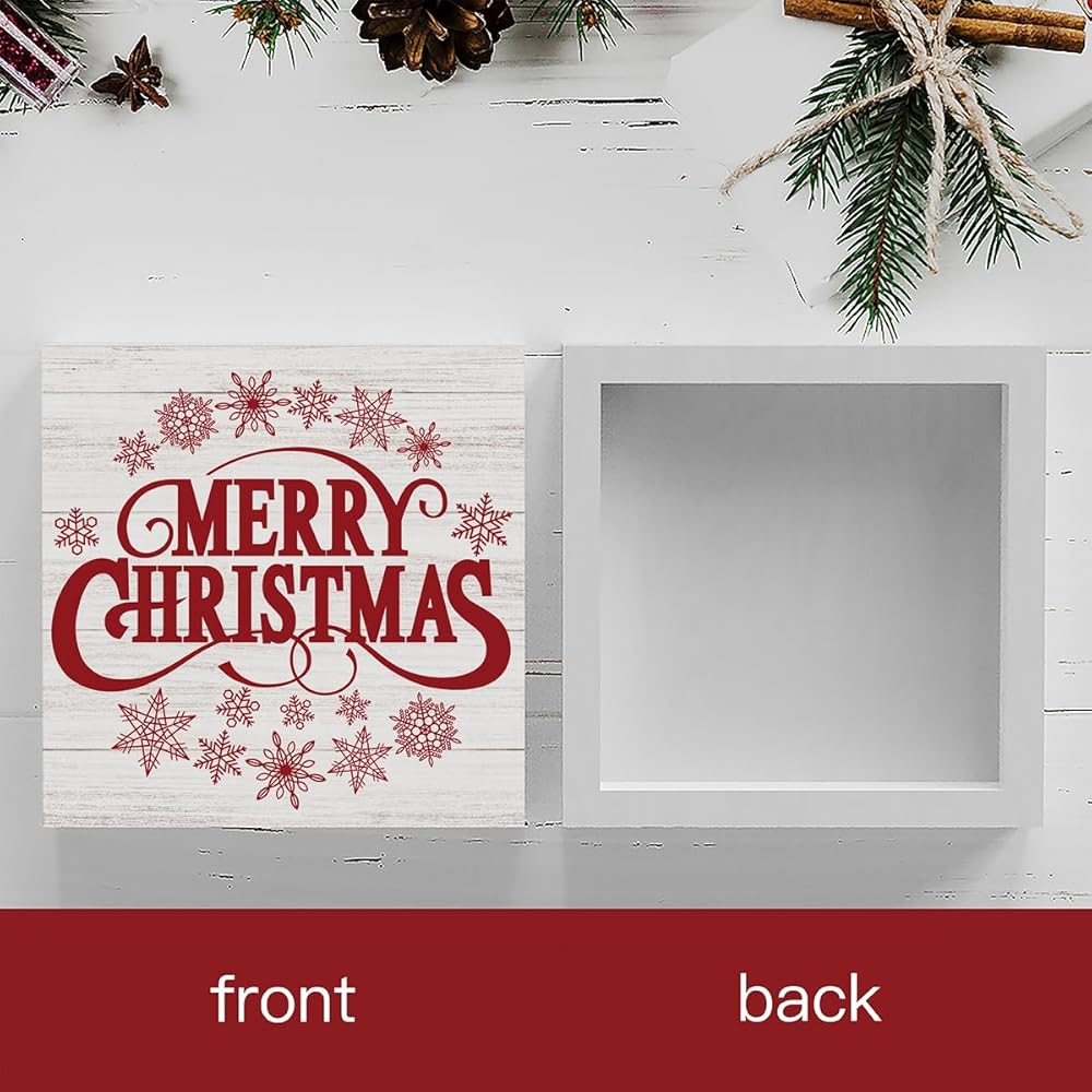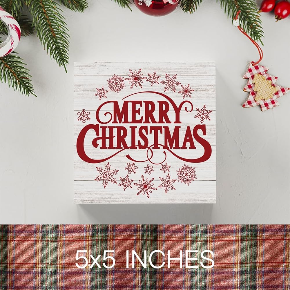 الرجعية ريفي الشتاء عيد ميلاد سعيد مع الثلج علامة مربع الخشب، مزرعة عيد الميلاد سانتا ديكور العمل الفني، الخشب مربع علامة مكتب كتلة علامات المنزل الجرف مكتب الديكور 5 × 5 بوصة