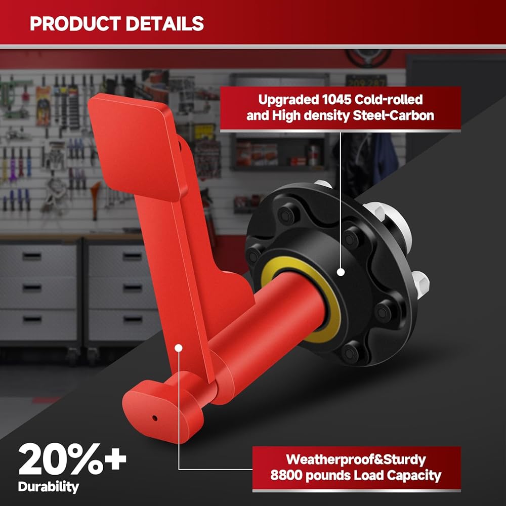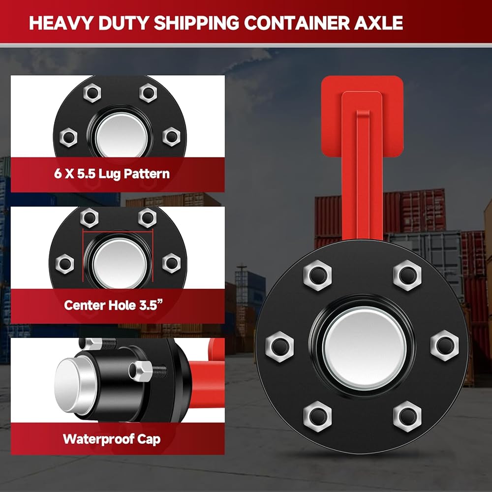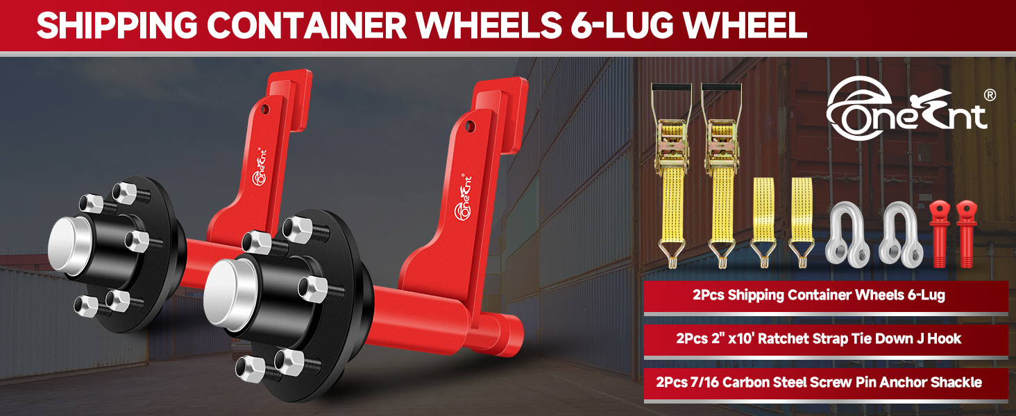 سهل الاستخدام: يقوم المحور الوسيط لمحور المقطورة ذو 6 عروات مقاس 5.5 بوصة بإدخال عجلة الإطارات ذات 6 عروات وشد البراغي، ويدخل محول عجلات حاوية الشحن ذو 6 عروات في جيب ISO ويقوم بتدويره لأعلى بمقدار 90 درجة. استخدم فولاذ كربوني 7/16 تكبل مرساة لولبية وخطاف ربط على شكل حرف J مقاس 2 × 10 بوصات لإنهاء العملية