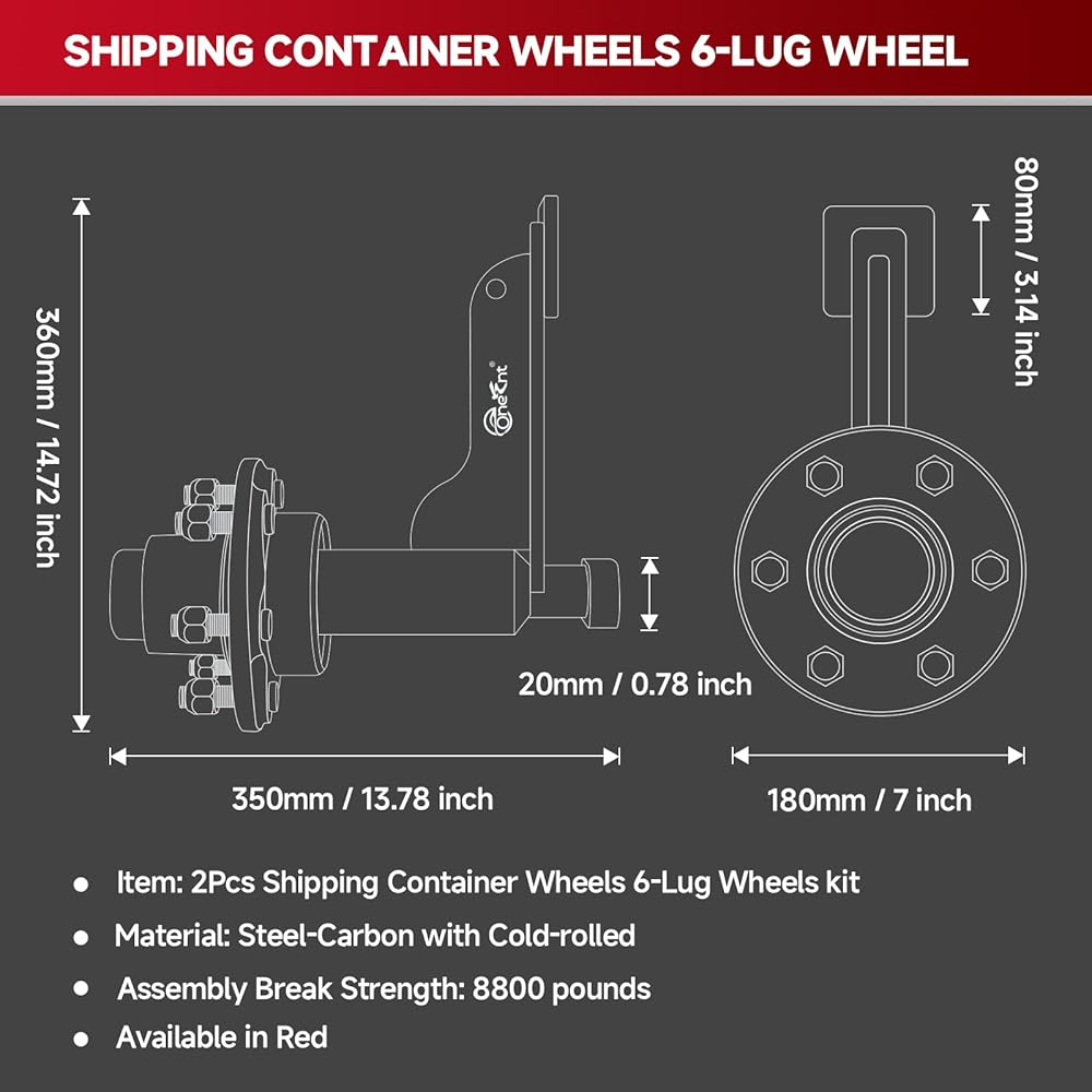المواد: عجلات حاوية الشحن 6 عجلات مصنوعة من الكربون الصلب مع مادة ملفوفة على البارد لتوفير دعم قوي لحاوية التخزين الخاصة بك، وتضمن قوة ومتانة لا مثيل لها، والحفاظ على أعلى أداء طوال الاستخدام الممتد.