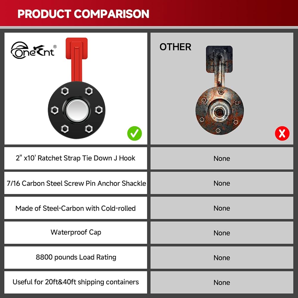 تشمل العبوة: قطعتان من عجلات حاوية الشحن 6 عروة، قطعتان من شريط السقاطة مقاس 2 × 10 بوصة خطاف على شكل حرف J، قطعتان من دبوس لولبي من الفولاذ الكربوني 7/16 تكبل مرساة