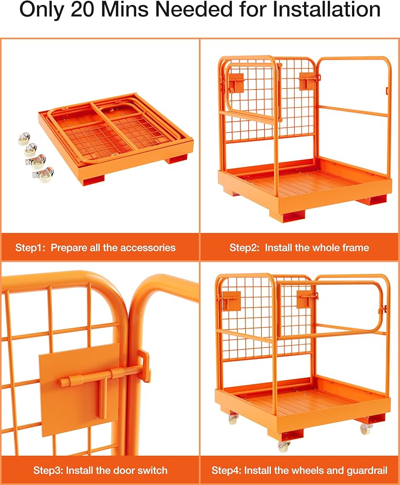 • 【High Quality Steel】:The forklift cage accessorie is made of heavy-duty steel for strong durability.The surface of the forklift safety cage is coated with orange paint, saving you the trouble of regular maintenance.