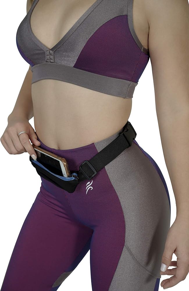 EXPANDABLE RUNNING WAIST PACK: Zippered water resistant expandable pouch holds smartphone, keys, money, wallet, inhaler, pills, passport, credit cards and other essential items. Convenient access to all your important items.