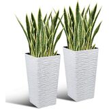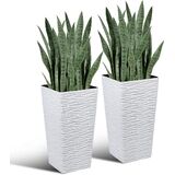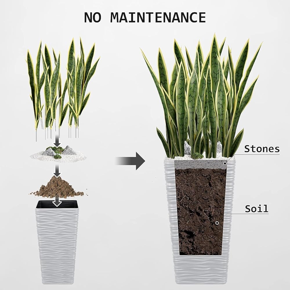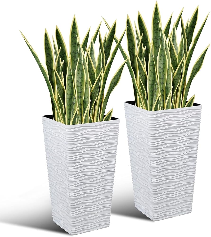 You will receive 20 PCS 25.6'' Artificial Green Snake Plants and 2-Pack 22" White Tall Planter. You can place them anywhere you want to decorate, such as the living room, bedroom, office, or outside on the deck, patio or garden to add flair to your life.