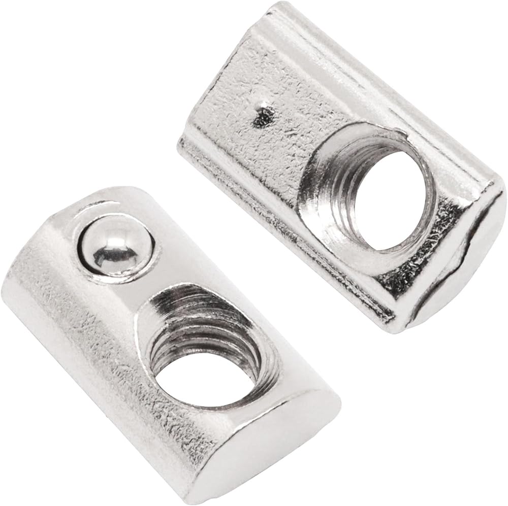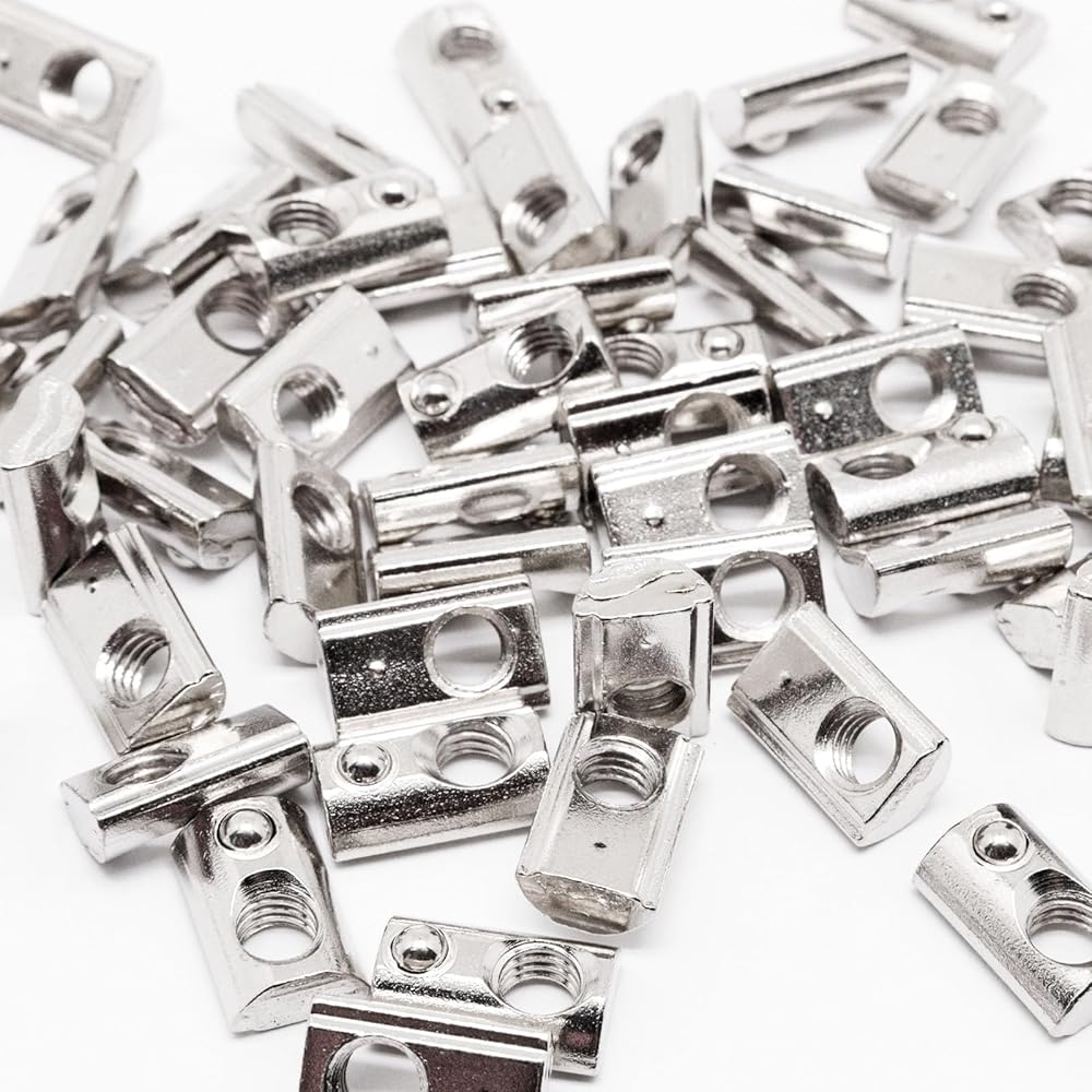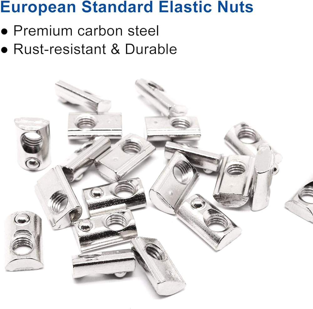 عبوة قيمة - 80 قطعة من صواميل M5 T-Slot المحملة بنابض، عرض الفتحة 6 مم. بالمقارنة مع الانزلاق في الجوز، لن تنزلق هذه المكسرات الزنبركية عند استخدامها.