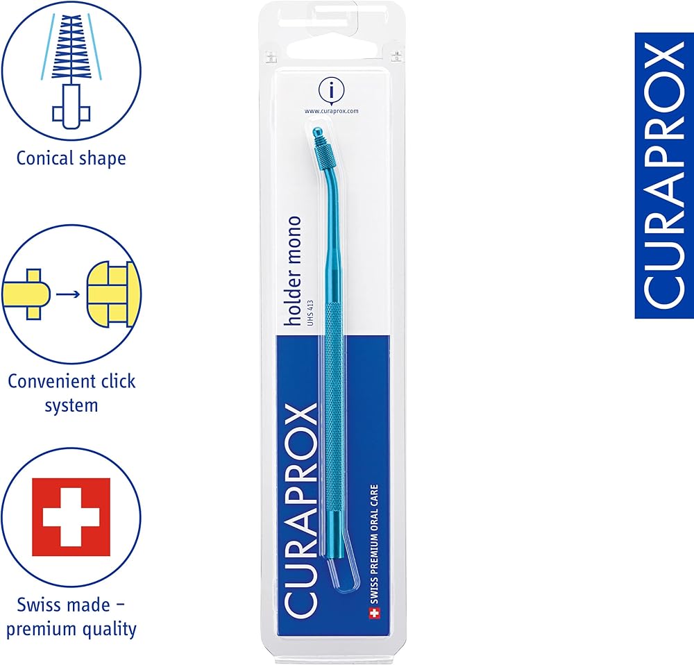 Every Curaprox interdental brush can be attached to any Curaprox holder. Not everyone gets along equally well with the same owner. That's why there are different holders: angled or straight, with a click or twist system, made of plastic or steel. The angled holders are particularly suitable for reaching the side teeth.