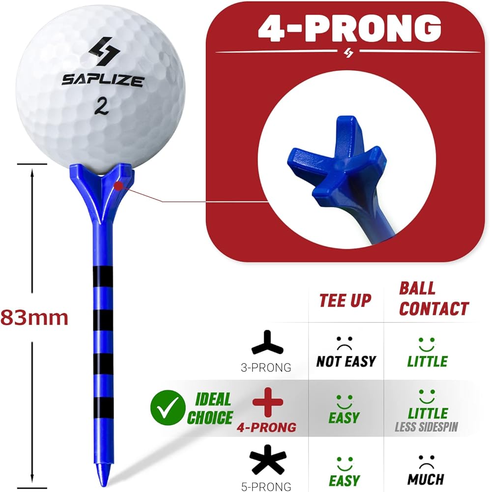 😊【تقليل الاحتكاك】يقلل تصميم الرأس المرتفع ذو 4 شوكات من الاتصال بين التيشيرت والكرة، مما يزيد من الأداء خارج التيشيرت، بينما يترجم السحب الأقل إلى مسافة أكبر عندما تكون في أمس الحاجة إليها.
