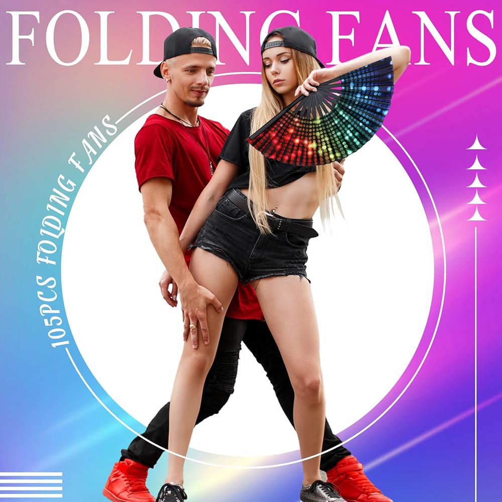 قابلة للخدمة وتدوم طويلاً: مصنوعة من نسيج نايلون مقاوم للماء مع أضلاع الخيزران القوية، تم تصميم مراوح اليد الاحتفالية هذه لتدوم طويلاً ولن تنكسر أو تتشوه بسهولة، ومناسبة لمجموعة متنوعة من المناسبات، بما في ذلك حفلات الرقص، والديسكو، والحفلات الراقصة، والعروض المسرحية. وأكثر من ذلك
