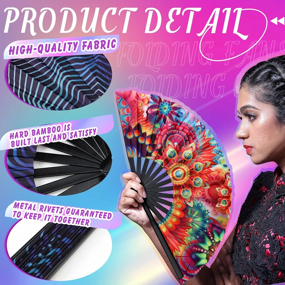 تجعلك مميزًا: تتميز كل مروحة يد احتفالية بأنماط زاهية وملونة، وتبدو جذابة وساحرة، مما سيجعلك مميزًا بين الناس