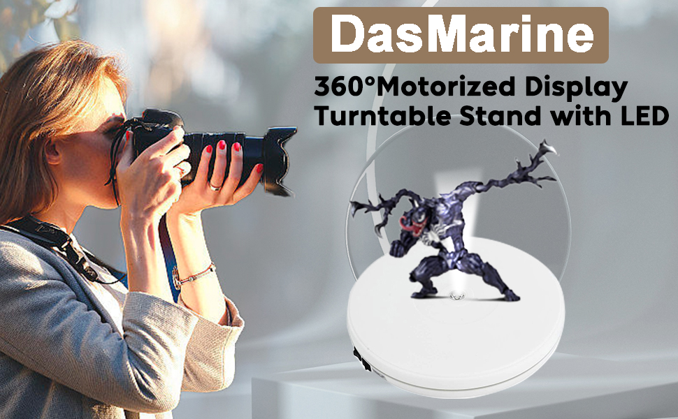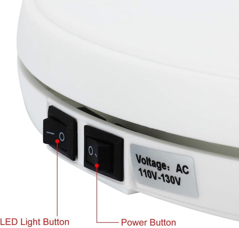 حامل شاشة دوار بمحرك كهربائي 110 فولت من DasMarine مع LED، قطر 10 بوصة/25 سم، تحميل 22 رطل، دوران 360 درجة في أي اتجاه، للتصوير الفوتوغرافي، عرض (10 بوصة/25 سم، أبيض)