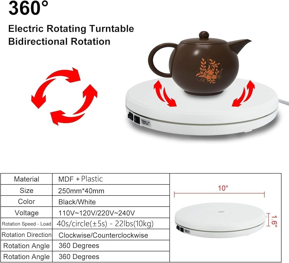 • ★ المواصفات: تيار متردد 110 فولت - 120 فولت، محول تيار متردد متضمن، تحميل 22 رطل، قطر 10 بوصة/25 سم، 40 ثانية/دائرة