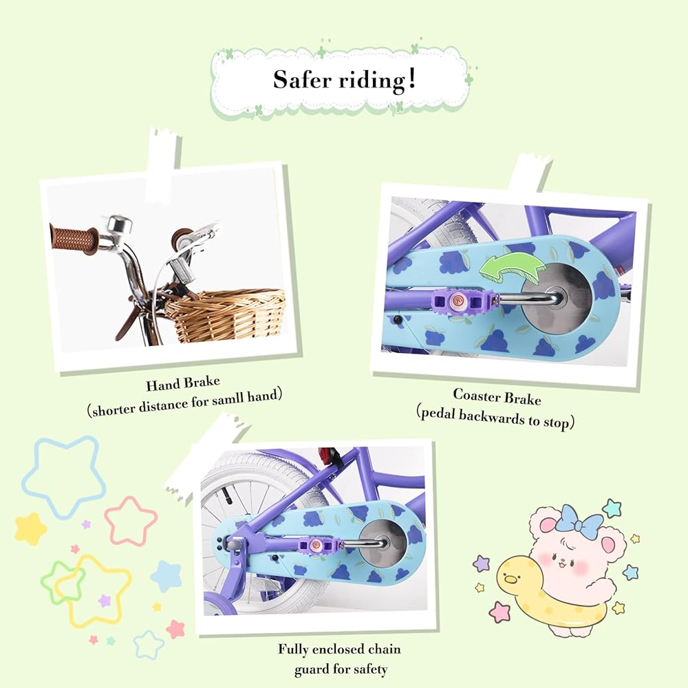 ركوب أكثر أمانا! توفر فرامل الفرجار الأمامية بالإضافة إلى قاعدة الأكواب الخلفية/فرامل القدم قوة إيقاف كبيرة مع المزيد من الأمان، إطارات هوائية عريضة مقاس 2.125 بوصة تضيف المزيد من الثبات، إطار فولاذي قوي وكرنك، دواسة راتينج غير قابلة للانزلاق، واقي سلسلة مغلق، عاكسات أمامية وخلفية وعاكسات العجلات .