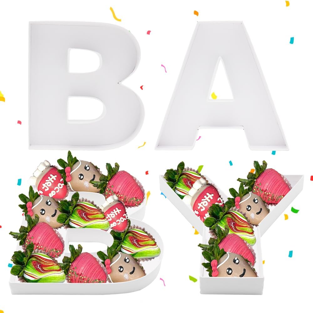 This adorable 9-inch cardboard cutout letter is perfect for serving treats at your little one's baby shower. Crafted from sturdy paper mache, the B holds its shape while displaying delicious snacks. Guests will love arranging mini cupcakes, cookies and candies on the spacious serving surface. When the party's over, use the letter as a colorful decoration in the nursery. Measuring 9 inches tall by 7 inches wide, it's just the right size for showcasing an assortment of bite-sized goodies. Clean up is simple - just wipe down with a damp cloth. Add this unique charcuterie board to your party favors and watch guests swoon over the sweet sentiment.
