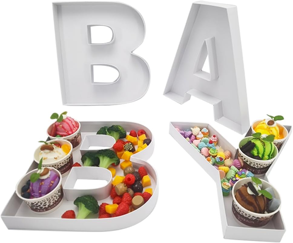 PERFECT PARTY PIECE: This 9-inch cardboard cutout letter makes a sweet serving tray for baby snacks, treats or small sandwiches at your baby shower party.