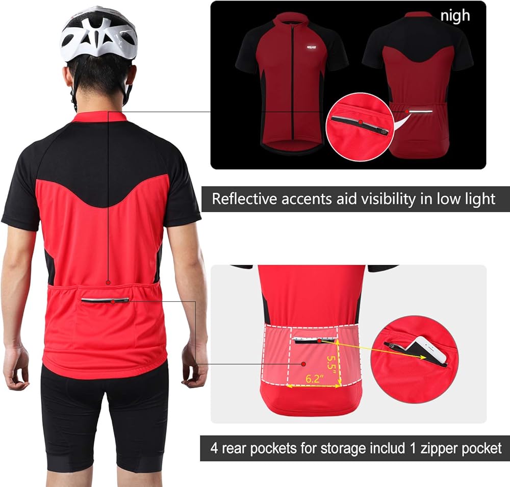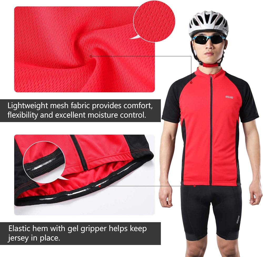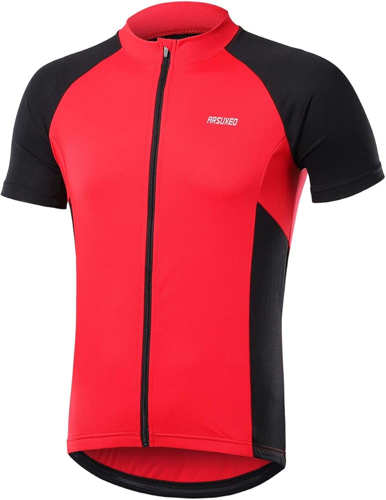 قميص ARSUXEO للرجال بأكمام قصيرة لركوب الدراجات من الجيرسيه وجيب بسحاب 655