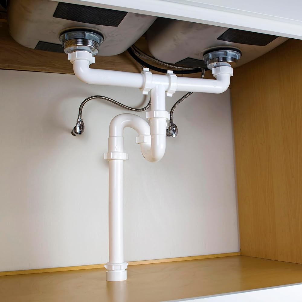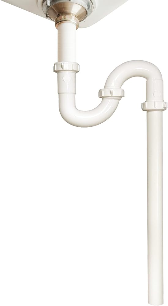 White Polypropylene S-Trap for kitchen or lavatory. 20-1/2-Inch long with 1-1/2-Inch or 1-1/4-Inch Inlet with reducer washer.