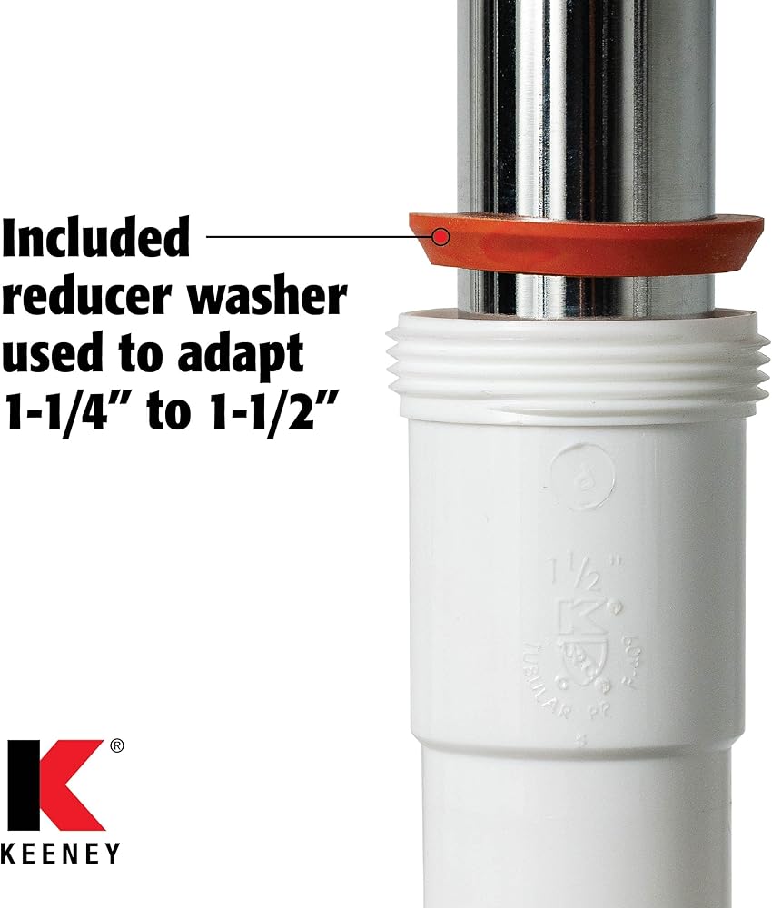Keeney's white polypropylene S trap for kitchens or lavatories is designed to prevent sewer gas from escaping from a plumbing fixture or drain in bathrooms. It has a 1. 5-in. inlet (or 1. 25-in. with a reducer washer) and and is 20. 5-in. in length. This item is intended for slip joint connections and comes with a reducer washer.