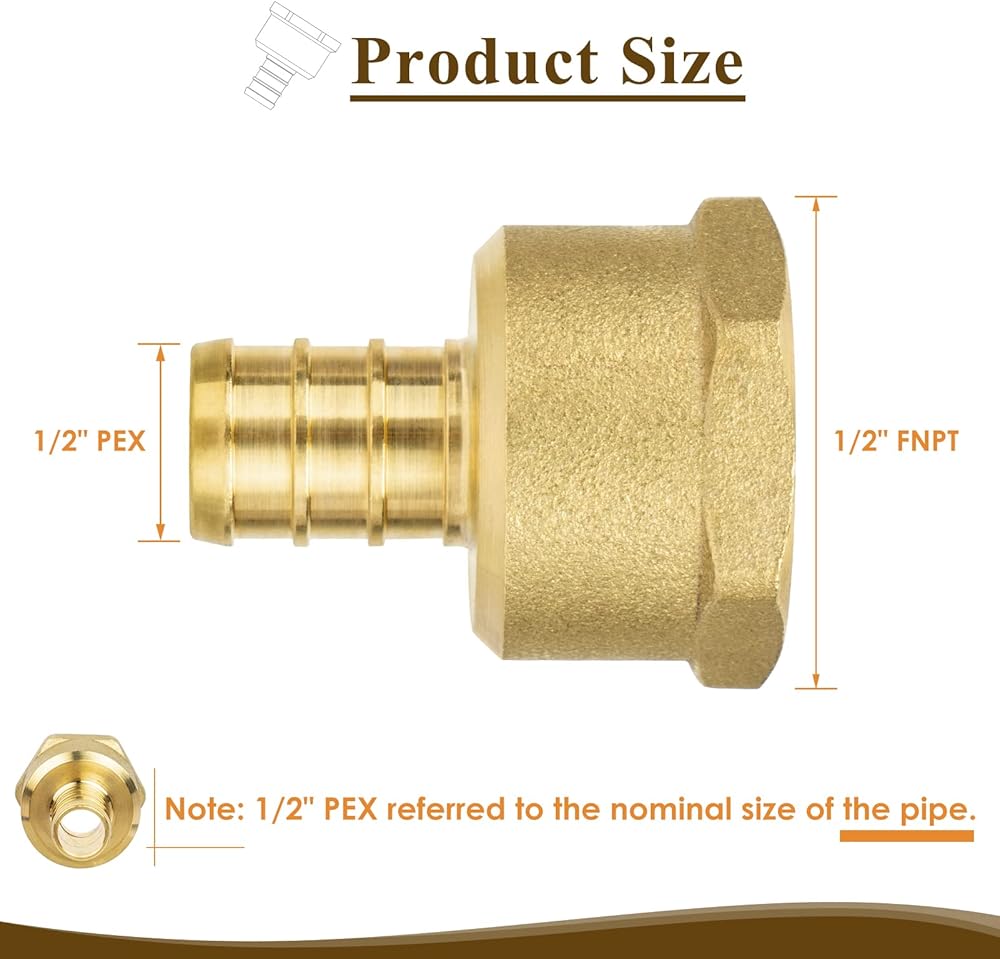 【محول PEX إلى NPT】 محول أنثى Pex 1/2 بوصة يربط أنابيب PEX بمكونات أو معدات السباكة الملولبة الأنثوية في خط مستقيم.