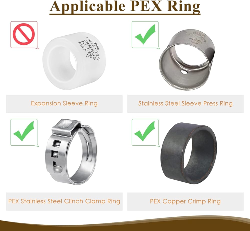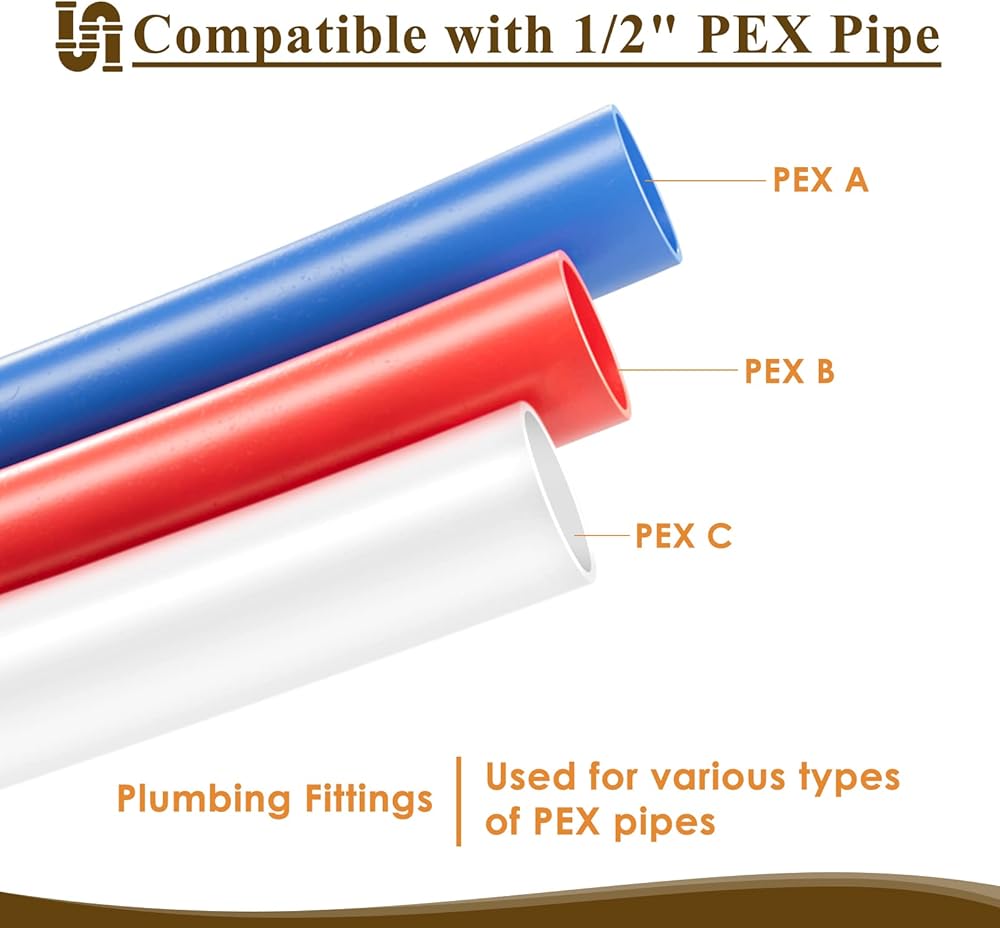 【تركيب أنابيب PEX】تتوافق مجموعة تركيبات Pex مقاس 1/2 بوصة مع أنواع مختلفة من أنابيب PEX، بما في ذلك PEX A وPEX B وPEX C. ملاحظة: أنبوب PEX A غير مناسب لهذا المنتج.