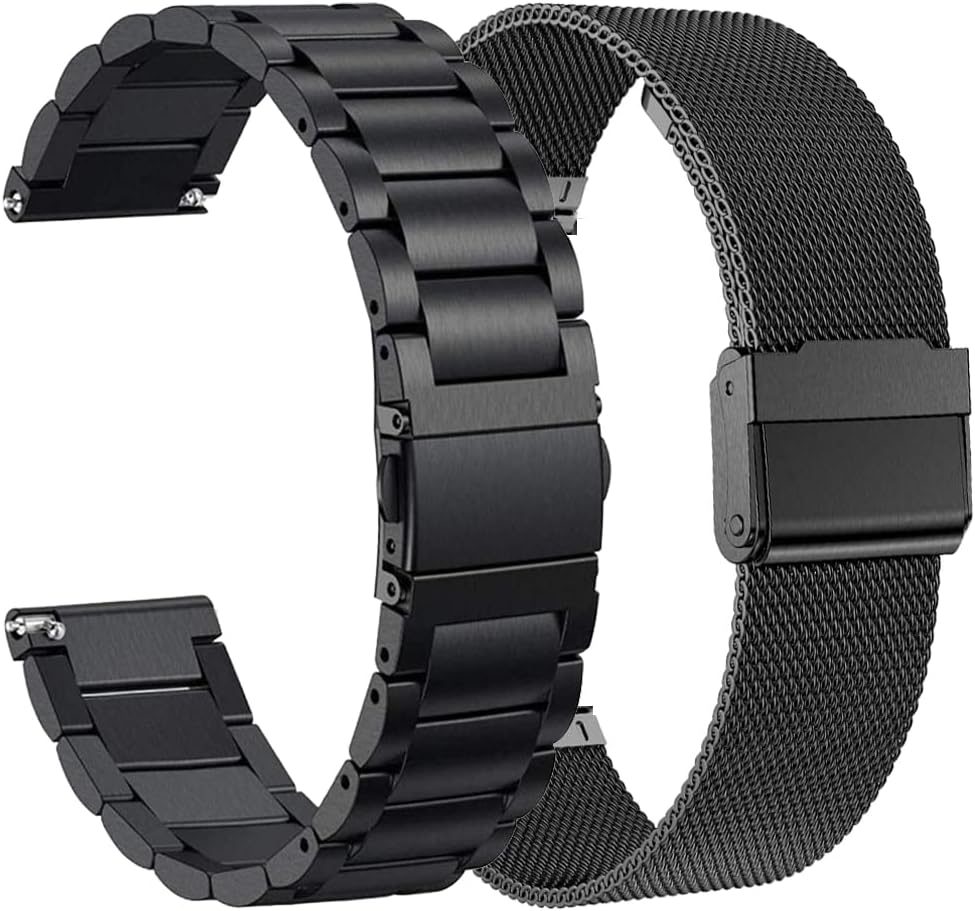 ViCRiOR Compatible with Amazfit GTR 3 / GTR 3 Pro / GTR 2 / GTR 2e / GTR 47mm Bands, 2 Pack Stainless Steel + Mesh strap Bracelet Replacement for Amazfit Stratos, Black