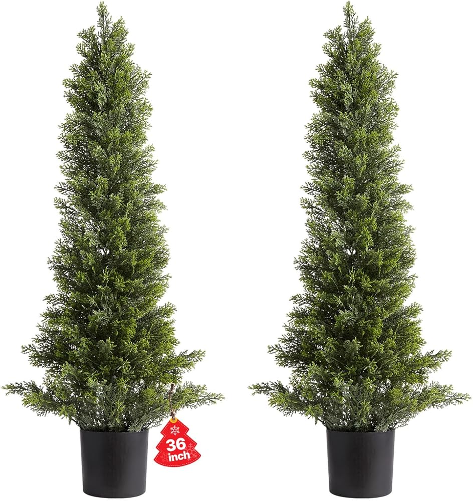 عبوتان من خشب الأرز مقاس 91.44 سم: تتضمن شجرتي أرز صناعيتين مقاس 91.44 سم، كل منها مع وعاء أساسي لسهولة وضعها دون إعادة زرعها. مناسبة للاستخدام الداخلي والخارجي، مثالية لتزيين الديكورات الداخلية والباحات والمداخل والمداخل.