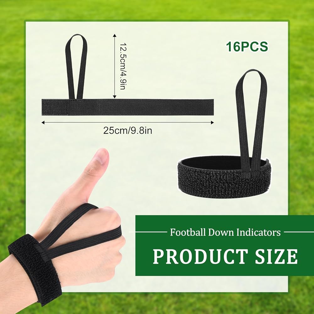 3. High Quality Material: Our football down indicator features all black French terry, made of quality nylon material, exquisite appearance looks very professional, not easy to deform or break, adhesive firmly, you can easily attach them firmly to your wrist and can be pasted repeatedly, can be used for a long time