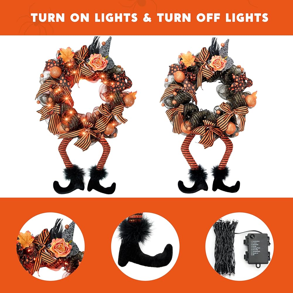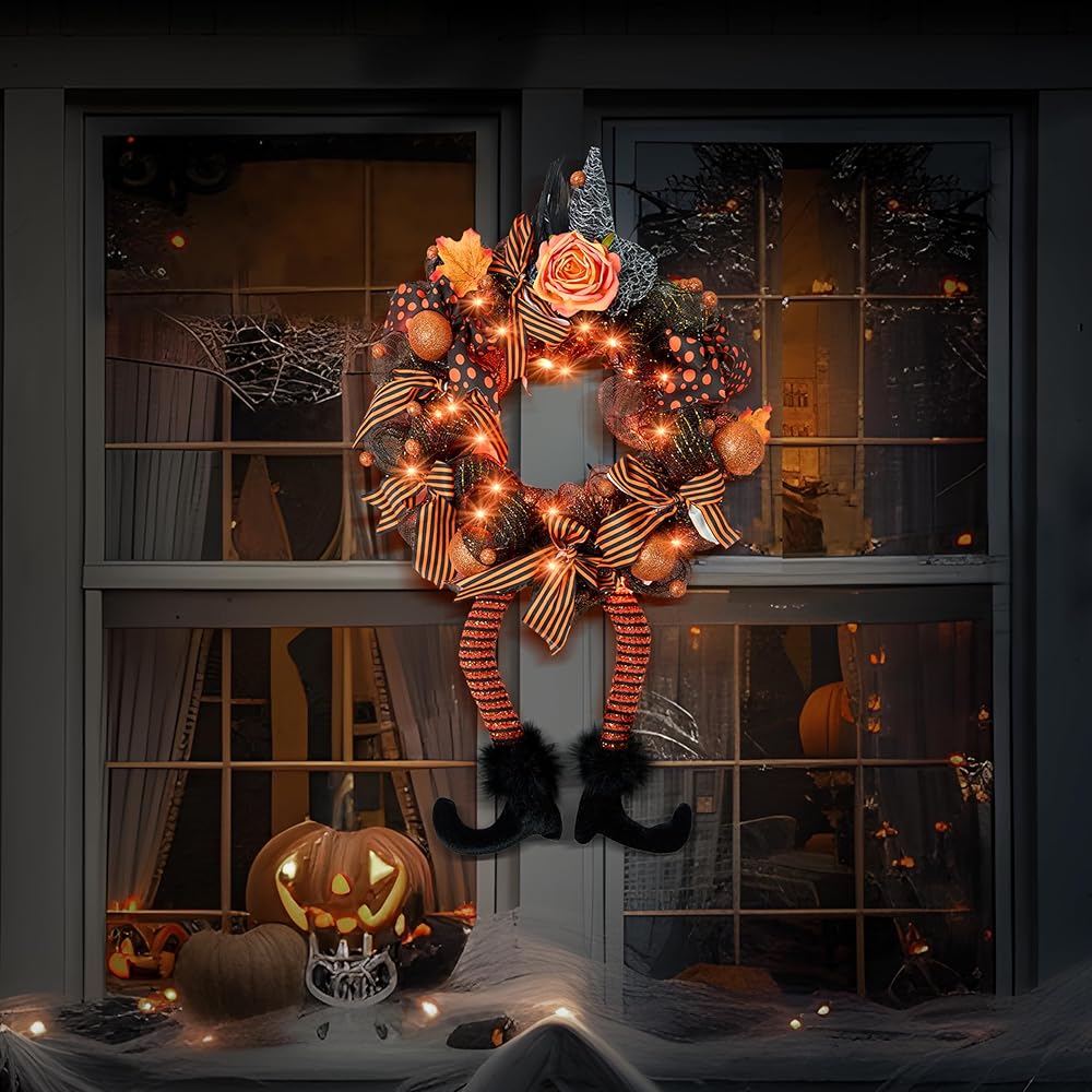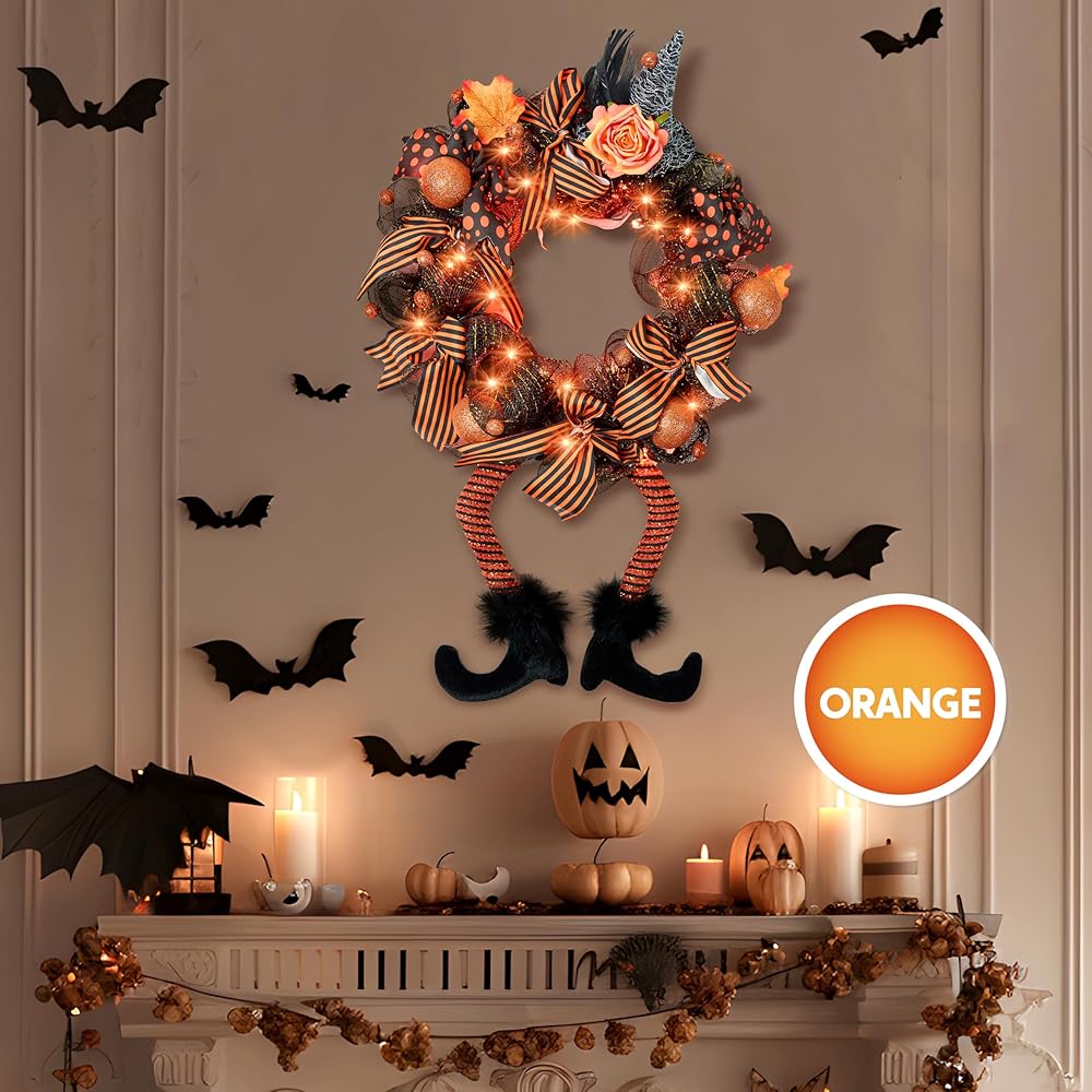 تصميم فريد من نوعه. يتميز إكليلنا الأسود مقاس 28 بوصة بمصابيح LED برتقالية وزخارف وأرجل ساحرة، مما يضيف عنصرًا ساحرًا إلى مجموعة ديكورات الهالوين الخاصة بك. يشتمل هذا الإكليل على عناصر الهالوين بما في ذلك قبعات الساحرة وأرجل الساحرة المعلقة وربطات العنق البرتقالية وزخارف الكرات والريش الأسود. سواء كنت تزين الباب الأمامي، أو النوافذ، أو الجدران، أو رف الموقد، أو الشرفة المغطاة في الهواء الطلق، فإن هذا الإكليل يدلي ببيان. مقاس المنتج 28 × 18 × 4 بوصة.