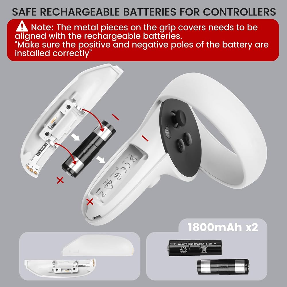 【بطاريتان قابلتان لإعادة الشحن وغطاء بطارية】تتضمن بطاريتين قابلتين لإعادة الشحن بسعة 1800 مللي أمبير في الساعة وأغطية بطاريات مخصصة لأجهزة التحكم اوكولوس كويست 2، مما يوفر لك متاعب استبدال البطاريات باستمرار. تحتوي قاعدة الشحن الخاصة بأوكيولوس كويست 2 على علامات "L" و "R"، مما يضمن وضع وحدة التحكم اليسرى بالقرب من "L" ووحدة التحكم اليمنى بالقرب من "R".