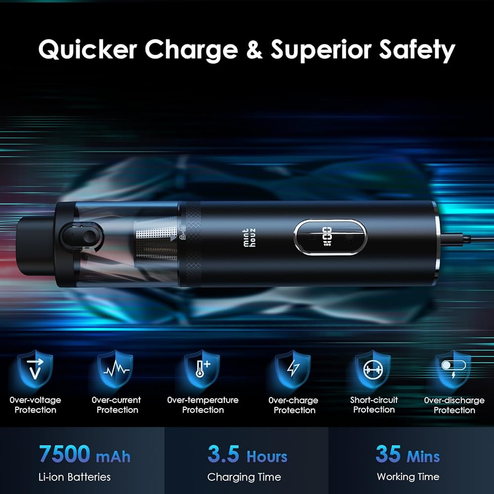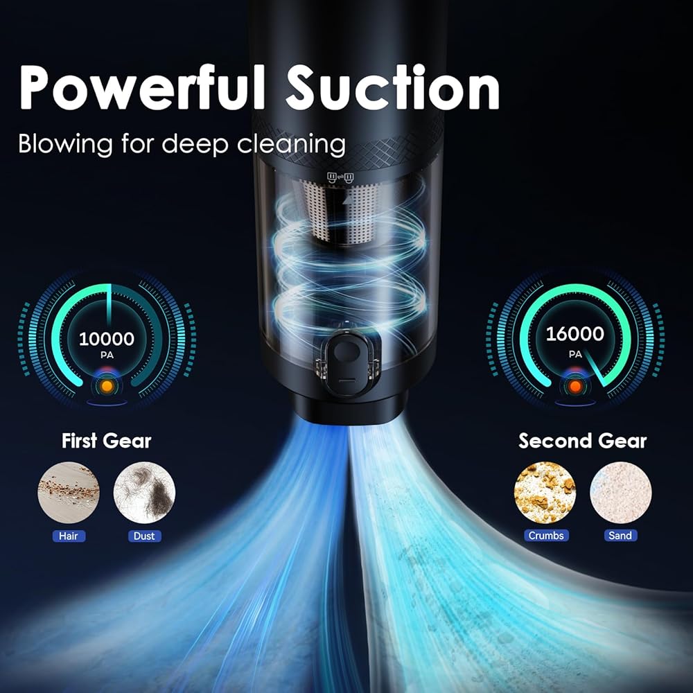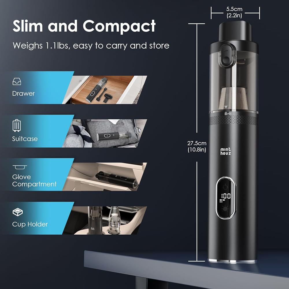 مكنسة كهربائية محمولة لاسلكية من مينثوز، 16000 باسكال، مكنسة كهربائية للسيارة بقوة شفط فائقة ومنفضة هواء 2 في 1، مكنسة كهربائية محمولة متعددة الوظائف مع شاشة LED للوحة مفاتيح السيارة والمنزل والمكتب