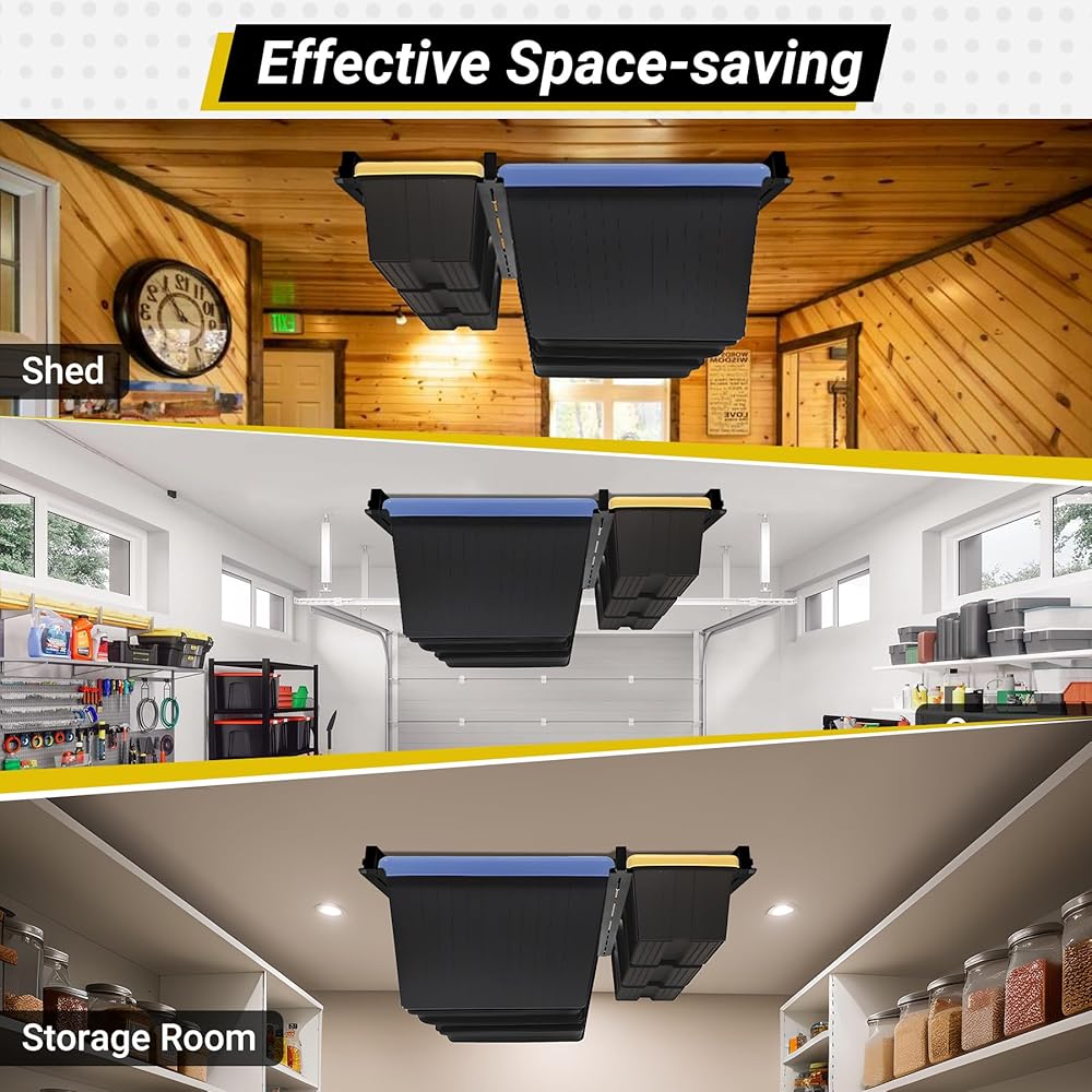 • تصميم قابل للتوسيع على شكل حرف T: يتميز رف تخزين السقف الخاص بنا بتصميم فريد على شكل حرف T. تخزين سقف الجراج يحمل المزيد من الصناديق إذا تم تركيبه أفقيًا، لذا يمكنك شراء مجموعة إضافية لتوفير مساحة تخزين إضافية. (أبعاد المنتج: 48 بوصة طول × 48 بوصة عرض × 3.95 بوصة ارتفاع)